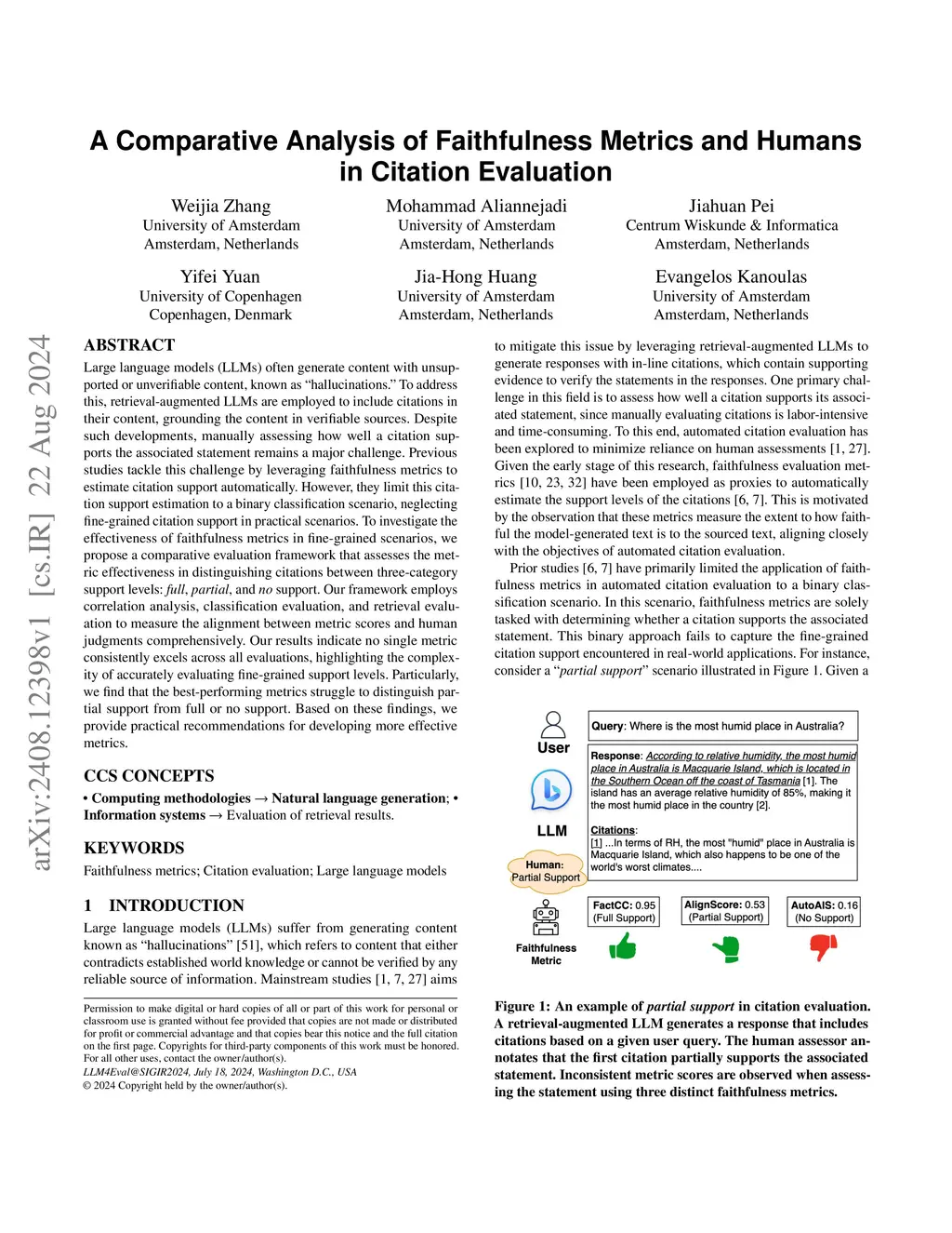 A Comparative Analysis of Faithfulness Metrics and Humans in Citation