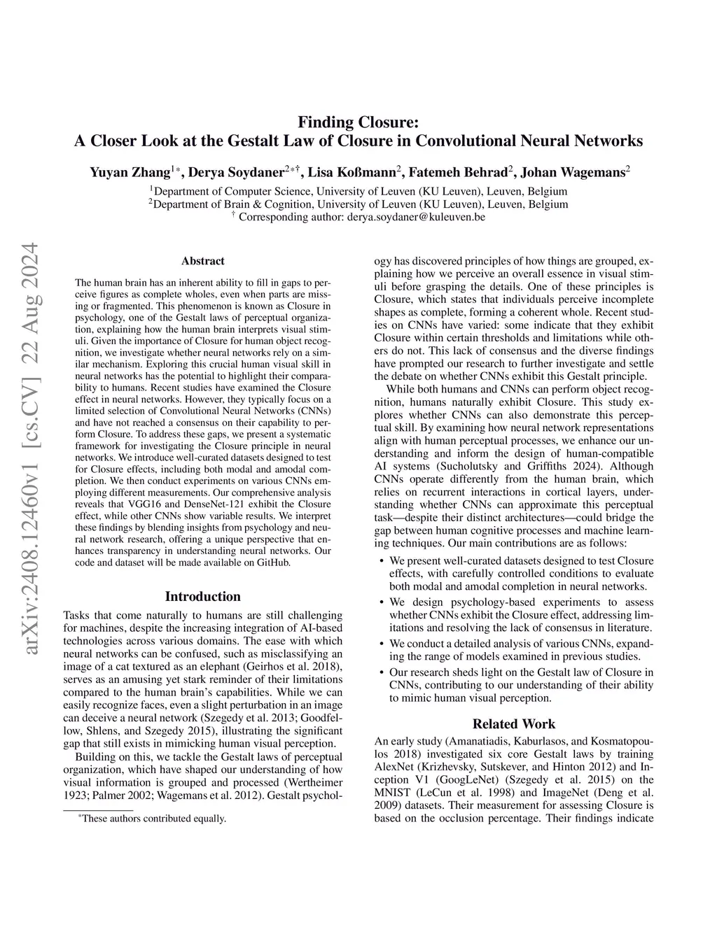 The human brain has an inherent ability to fill in gaps to perceive figures as complete wholes, even when parts are missing or fragmented. This phenomenon is known as Closure in psychology, one of the Gestalt laws of perceptual organization, explaining how the human brain interprets visual stimuli. Given the importance of Closure for human object recognition, we investigate whether neural networks rely on a similar mechanism. Exploring this crucial human visual skill in neural networks has the potential to highlight their comparability to humans. Recent studies have examined the Closure effect in neural networks. However, they typically focus on a limited selection of Convolutional Neural Networks (CNNs) and have not reached a consensus on their capability to perform Closure. To address these gaps, we present a systematic framework for investigating the Closure principle in neural networks. We introduce well-curated datasets designed to test for Closure effects, including both modal and amodal completion. We then conduct experiments on various CNNs employing different measurements. Our comprehensive analysis reveals that VGG16 and DenseNet-121 exhibit the Closure effect, while other CNNs show variable results. We interpret these findings by blending insights from psychology and neural network research, offering a unique perspective that enhances transparency in understanding neural networks. Our code and dataset will be made available on GitHub.