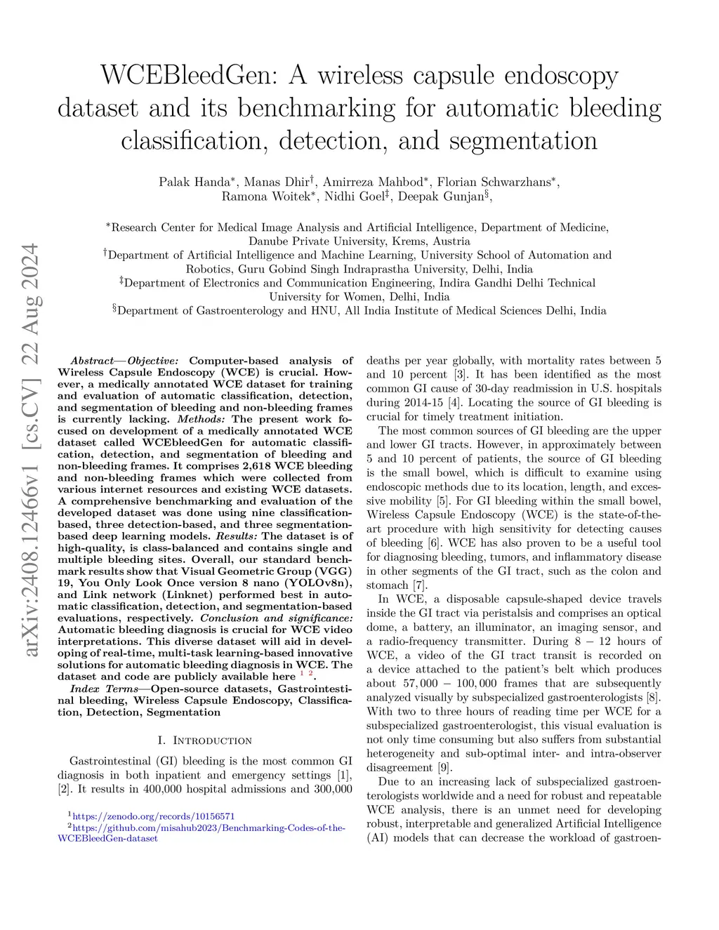 WCEbleedGen: A wireless capsule endoscopy dataset and its benchmarking