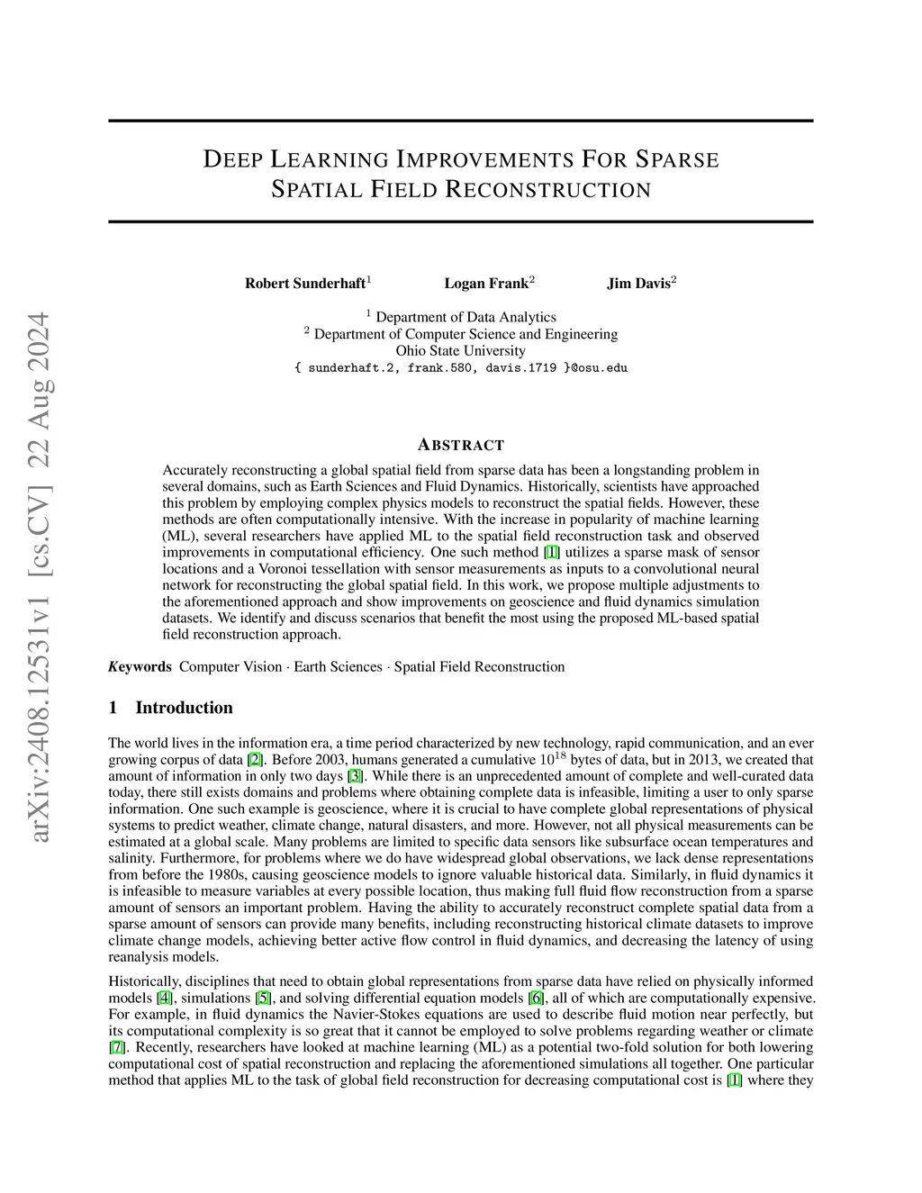Deep Learning Improvements for Sparse Spatial Field Reconstruction