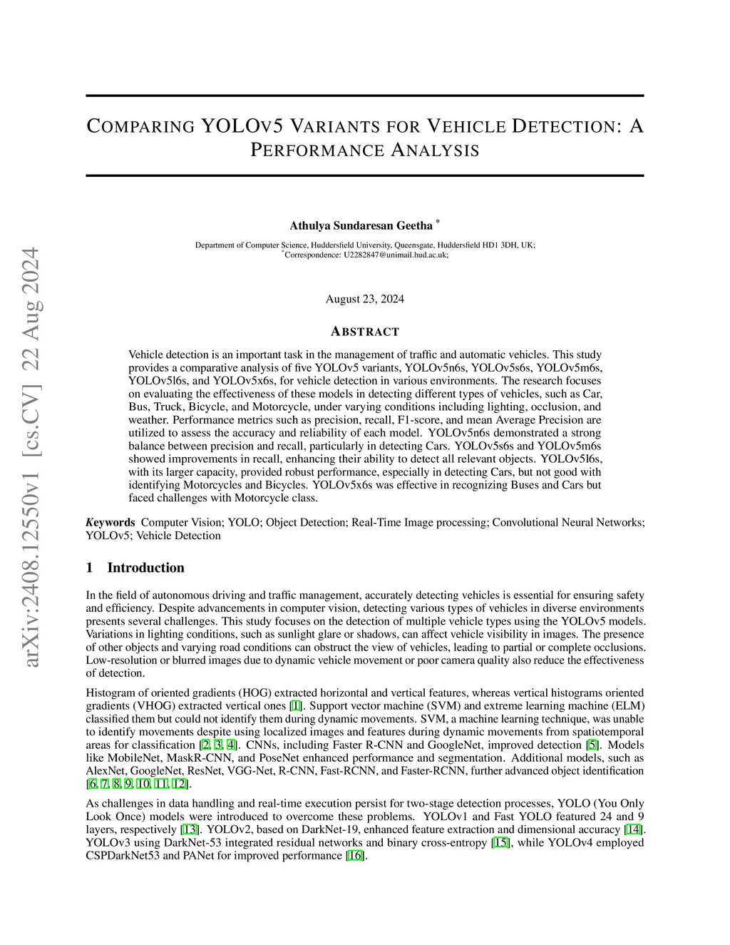 Comparing YOLOv5 Variants for Vehicle Detection: A Performance Analysis