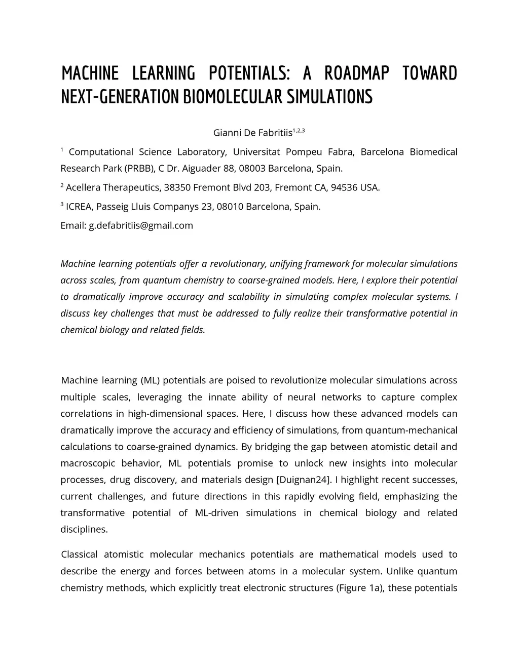 Machine Learning Potentials: A Roadmap Toward Next-Generation