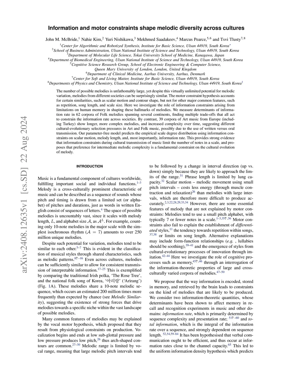 Information and motor constraints shape melodic diversity across cultures