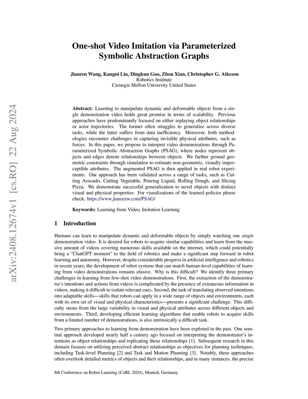 One-shot Video Imitation via Parameterized Symbolic Abstraction Graphs