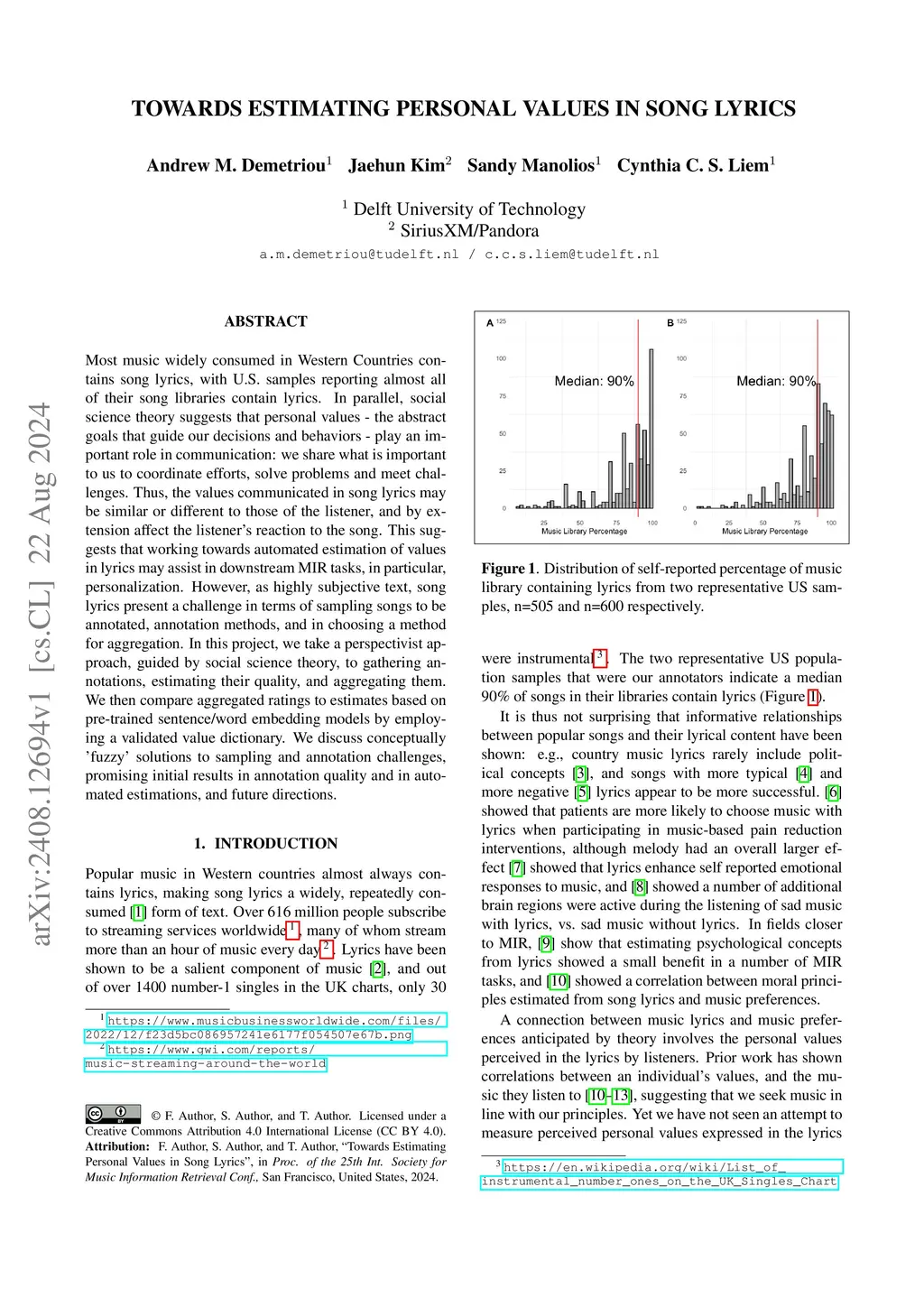 Towards Estimating Personal Values in Song Lyrics