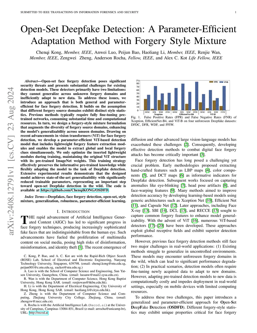 Open-set face forgery detection poses significant security threats and presents substantial challenges for existing detection models. These detectors primarily have two limitations: they cannot generalize across unknown forgery domains and inefficiently adapt to new data. To address these issues, we introduce an approach that is both general and parameter-efficient for face forgery detection. It builds on the assumption that different forgery source domains exhibit distinct style statistics. Previous methods typically require fully fine-tuning pre-trained networks, consuming substantial time and computational resources. In turn, we design a forgery-style mixture formulation that augments the diversity of forgery source domains, enhancing the model's generalizability across unseen domains. Drawing on recent advancements in vision transformers (ViT) for face forgery detection, we develop a parameter-efficient ViT-based detection model that includes lightweight forgery feature extraction modules and enables the model to extract global and local forgery clues simultaneously. We only optimize the inserted lightweight modules during training, maintaining the original ViT structure with its pre-trained ImageNet weights. This training strategy effectively preserves the informative pre-trained knowledge while flexibly adapting the model to the task of Deepfake detection. Extensive experimental results demonstrate that the designed model achieves state-of-the-art generalizability with significantly reduced trainable parameters, representing an important step toward open-set Deepfake detection in the wild.