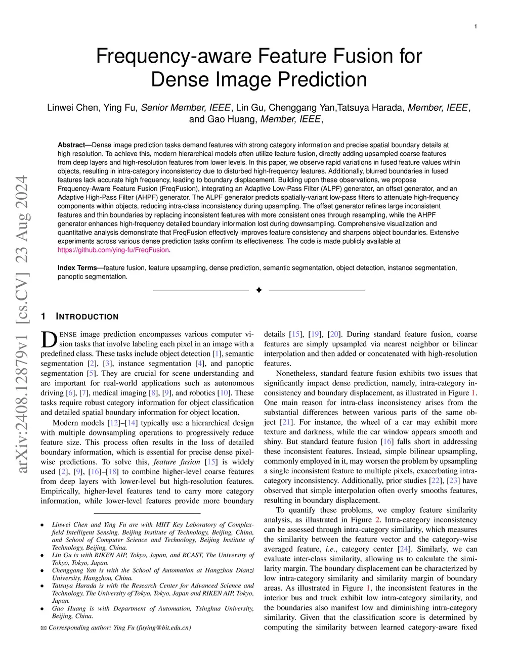 Frequency-aware Feature Fusion for Dense Image Prediction