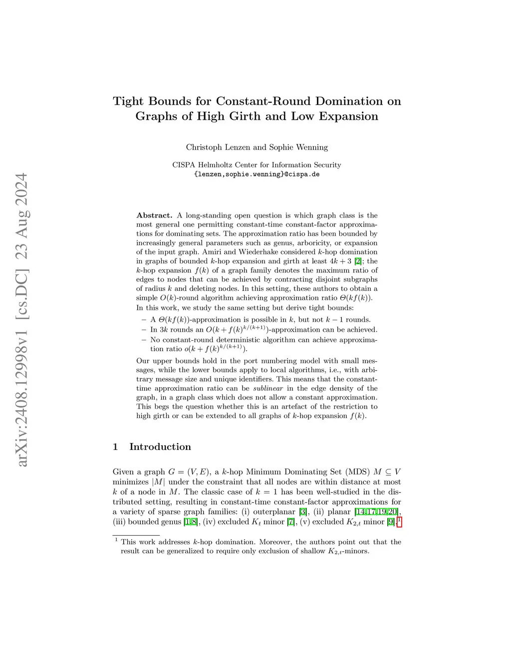 A long-standing open question is which graph class is the most general one permitting constant-time constant-factor approximations for dominating sets. The approximation ratio has been bounded by increasingly general parameters such as genus, arboricity, or expansion of the input graph. Amiri and Wiederhake considered -hop domination in graphs of bounded -hop expansion and girth at least ; the -hop expansion of a graph family denotes the maximum ratio of edges to nodes that can be achieved by contracting disjoint subgraphs of radius and deleting nodes. In this setting, these authors to obtain a simple -round algorithm achieving approximation ratio . In this work, we study the same setting but derive tight bounds: - A -approximation is possible in , but not rounds. - In rounds an -approximation can be achieved. - No constant-round deterministic algorithm can achieve approximation ratio . Our upper bounds hold in the port numbering model with small messages, while the lower bounds apply to local algorithms, i.e., with arbitrary message size and unique identifiers. This means that the constant-time approximation ratio can be \emph{sublinear} in the edge density of the graph, in a graph class which does not allow a constant approximation. This begs the question whether this is an artefact of the restriction to high girth or can be extended to all graphs of -hop expansion .