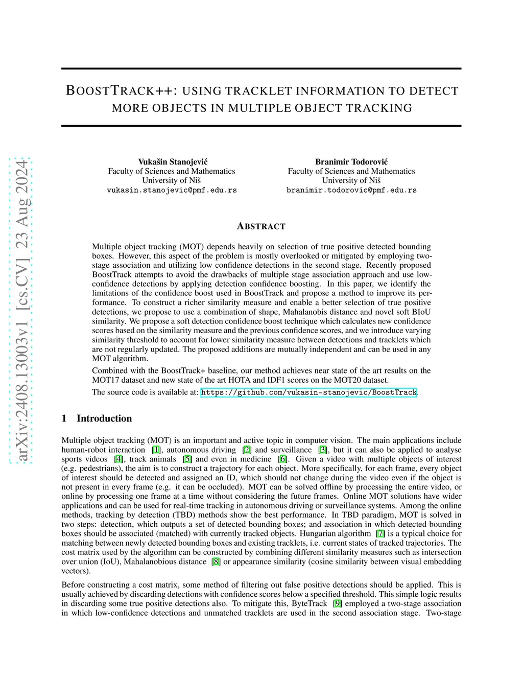 BoostTrack++: using tracklet information to detect more objects in multiple object tracking