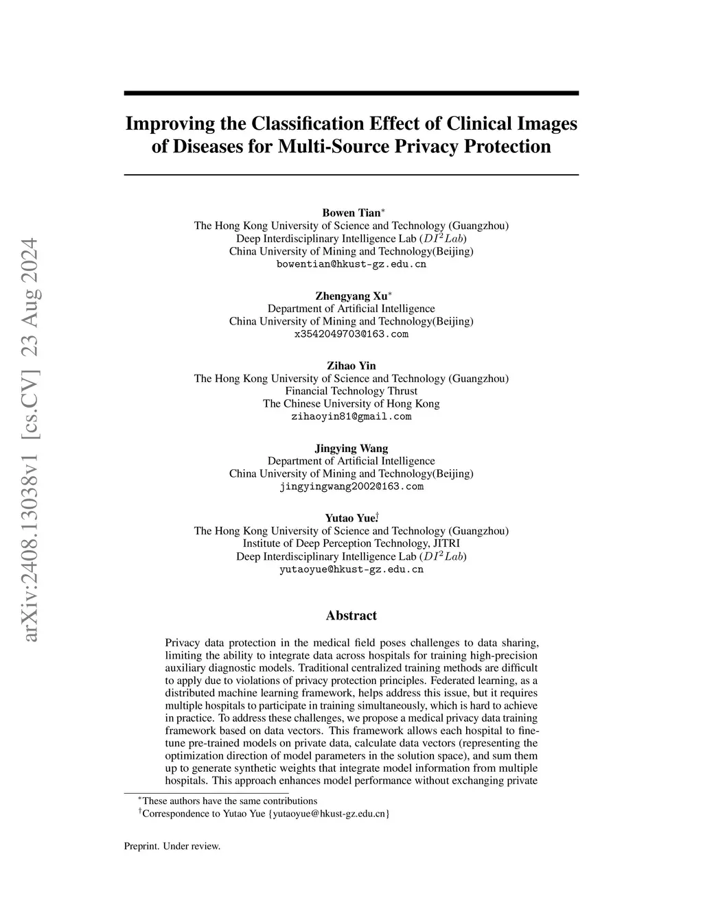Privacy data protection in the medical field poses challenges to data sharing, limiting the ability to integrate data across hospitals for training high-precision auxiliary diagnostic models. Traditional centralized training methods are difficult to apply due to violations of privacy protection principles. Federated learning, as a distributed machine learning framework, helps address this issue, but it requires multiple hospitals to participate in training simultaneously, which is hard to achieve in practice. To address these challenges, we propose a medical privacy data training framework based on data vectors. This framework allows each hospital to fine-tune pre-trained models on private data, calculate data vectors (representing the optimization direction of model parameters in the solution space), and sum them up to generate synthetic weights that integrate model information from multiple hospitals. This approach enhances model performance without exchanging private data or requiring synchronous training. Experimental results demonstrate that this method effectively utilizes dispersed private data resources while protecting patient privacy. The auxiliary diagnostic model trained using this approach significantly outperforms models trained independently by a single hospital, providing a new perspective for resolving the conflict between medical data privacy protection and model training and advancing the development of medical intelligence.