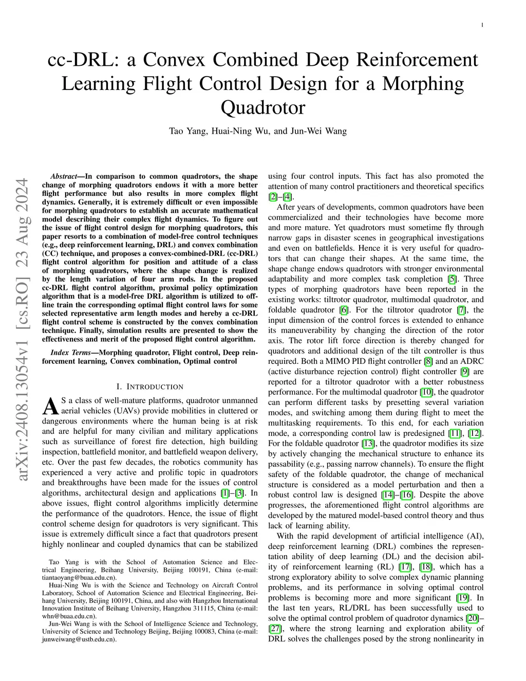 cc-DRL: a Convex Combined Deep Reinforcement Learning Flight Control