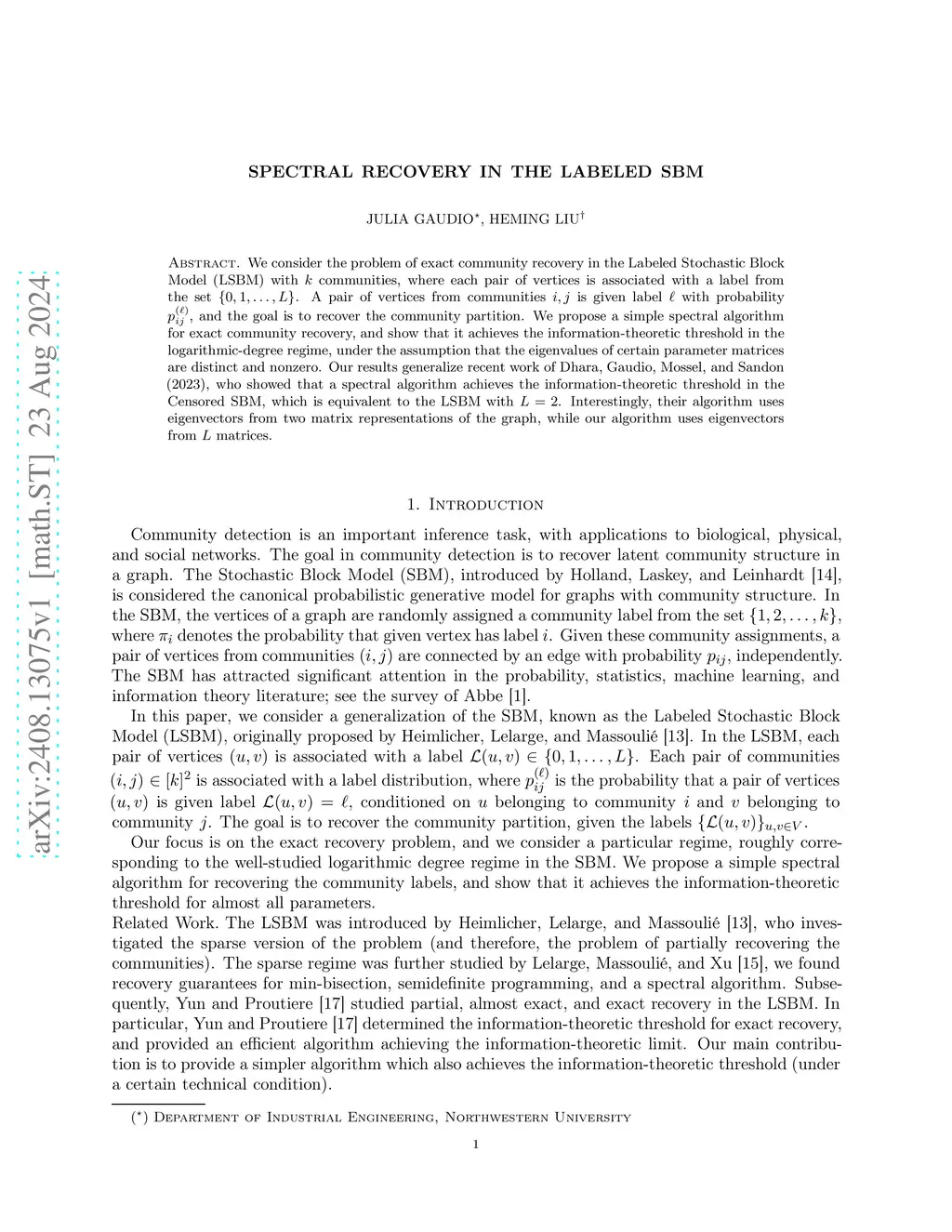 Spectral Recovery in the Labeled SBM