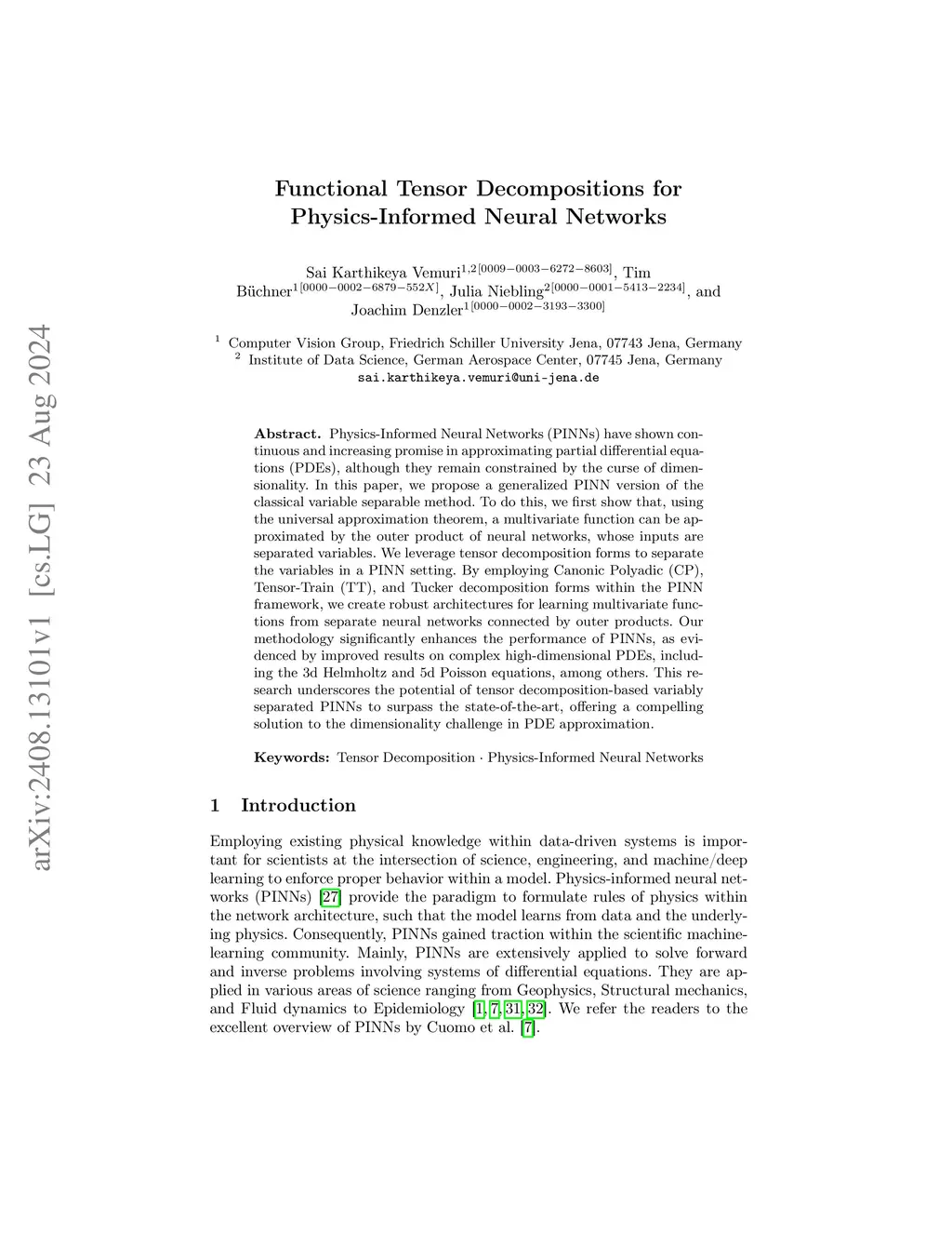 Functional Tensor Decompositions for Physics-Informed Neural Networks