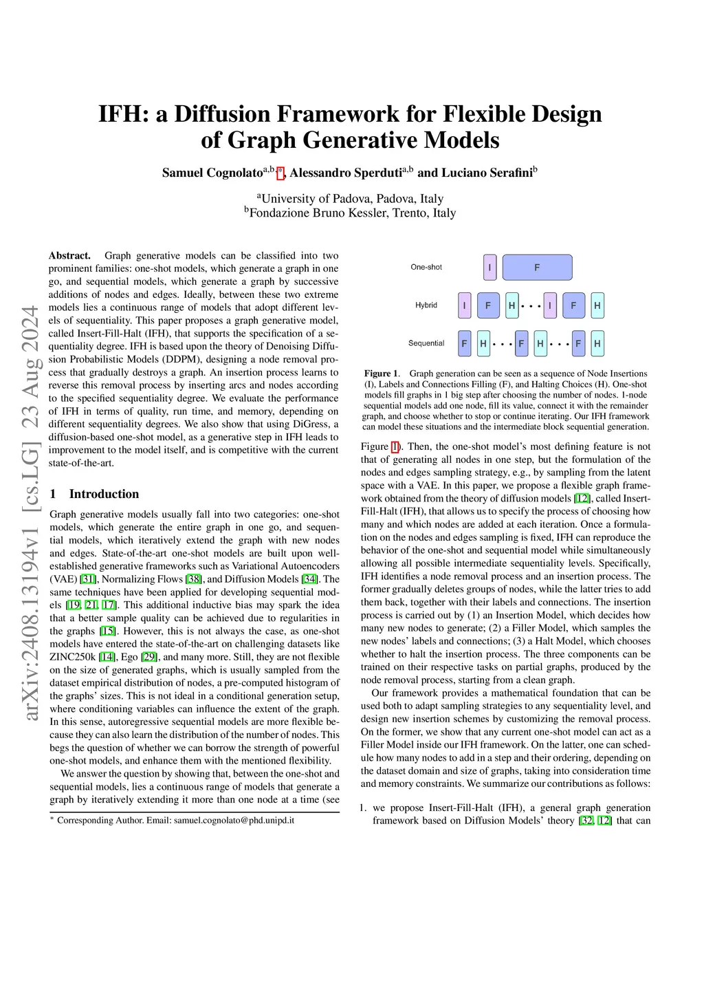 IFH: a Diffusion Framework for Flexible Design of Graph Generative