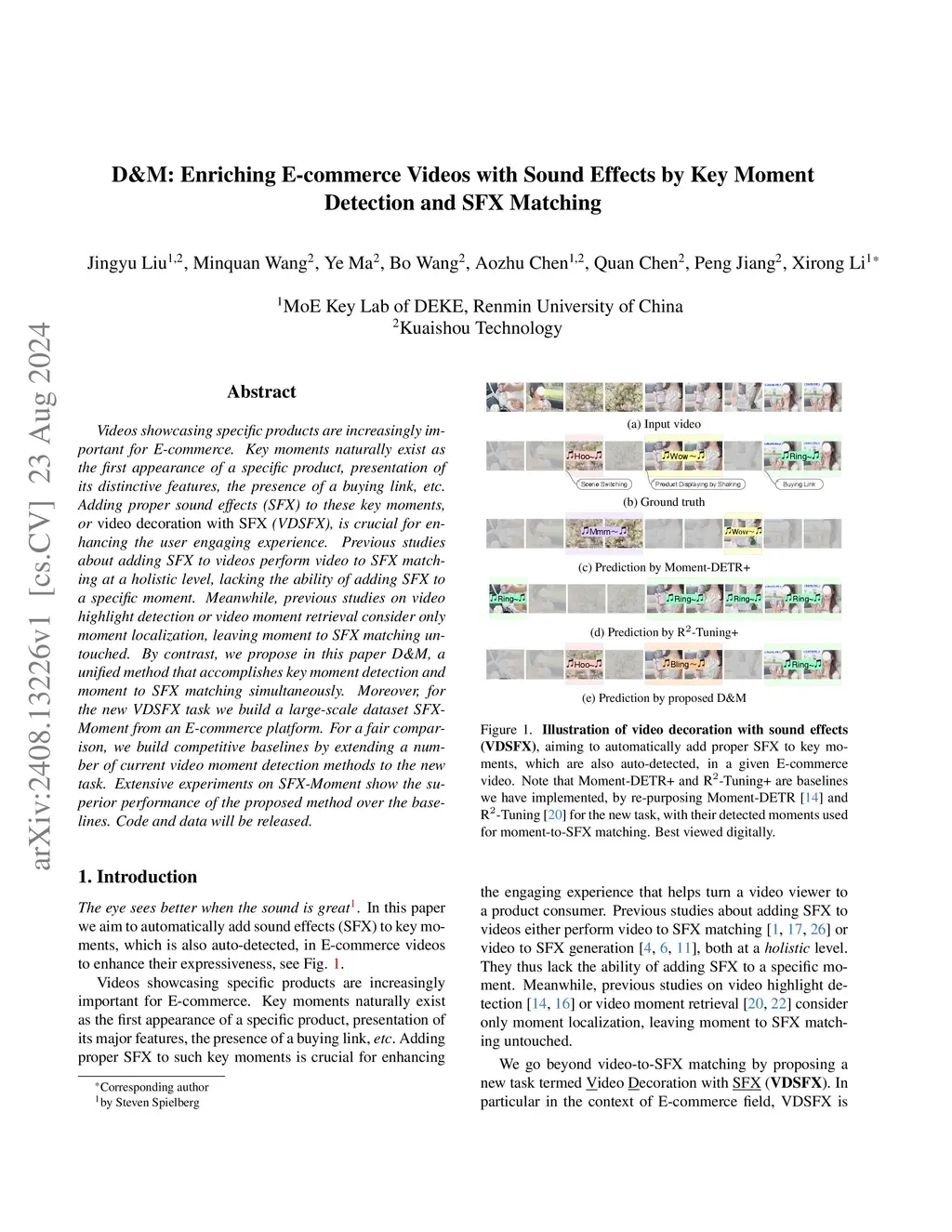 D&M: Enriching E-commerce Videos with Sound Effects by Key Moment Detection and SFX Matching