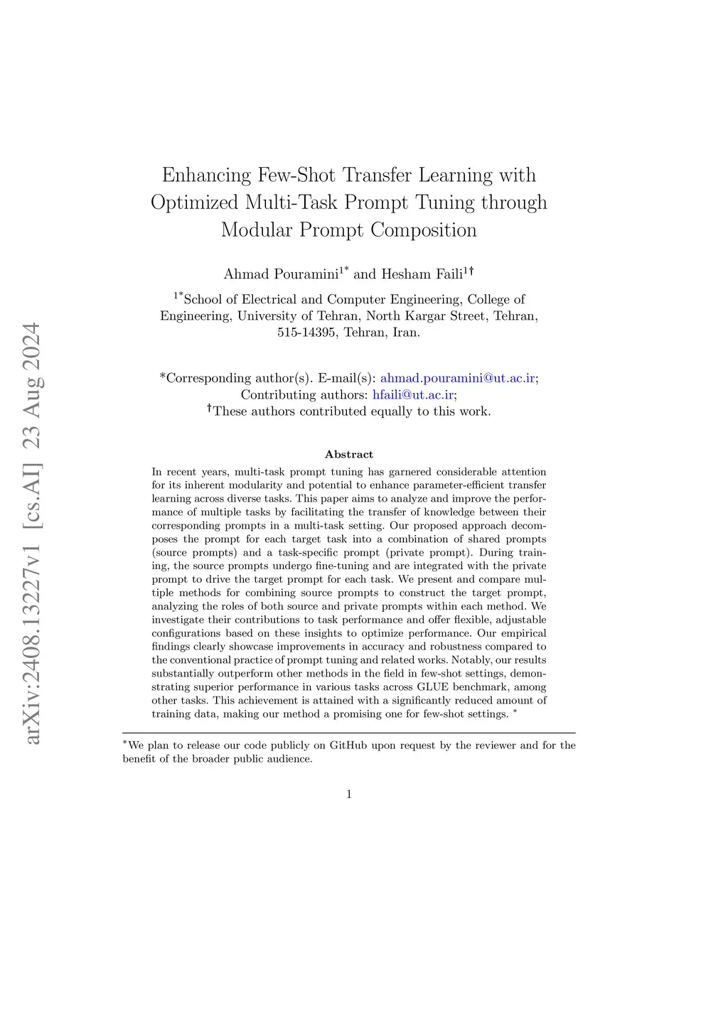 In recent years, multi-task prompt tuning has garnered considerable attention for its inherent modularity and potential to enhance parameter-efficient transfer learning across diverse tasks. This paper aims to analyze and improve the performance of multiple tasks by facilitating the transfer of knowledge between their corresponding prompts in a multi-task setting. Our proposed approach decomposes the prompt for each target task into a combination of shared prompts (source prompts) and a task-specific prompt (private prompt). During training, the source prompts undergo fine-tuning and are integrated with the private prompt to drive the target prompt for each task. We present and compare multiple methods for combining source prompts to construct the target prompt, analyzing the roles of both source and private prompts within each method. We investigate their contributions to task performance and offer flexible, adjustable configurations based on these insights to optimize performance. Our empirical findings clearly showcase improvements in accuracy and robustness compared to the conventional practice of prompt tuning and related works. Notably, our results substantially outperform other methods in the field in few-shot settings, demonstrating superior performance in various tasks across GLUE benchmark, among other tasks. This achievement is attained with a significantly reduced amount of training data, making our method a promising one for few-shot settings.