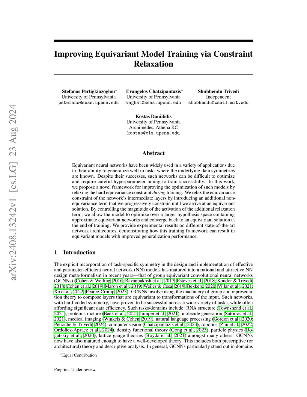 Equivariant neural networks have been widely used in a variety of applications due to their ability to generalize well in tasks where the underlying data symmetries are known. Despite their successes, such networks can be difficult to optimize and require careful hyperparameter tuning to train successfully. In this work, we propose a novel framework for improving the optimization of such models by relaxing the hard equivariance constraint during training: We relax the equivariance constraint of the network's intermediate layers by introducing an additional non-equivariant term that we progressively constrain until we arrive at an equivariant solution. By controlling the magnitude of the activation of the additional relaxation term, we allow the model to optimize over a larger hypothesis space containing approximate equivariant networks and converge back to an equivariant solution at the end of training. We provide experimental results on different state-of-the-art network architectures, demonstrating how this training framework can result in equivariant models with improved generalization performance. Our code is available atthis https URL