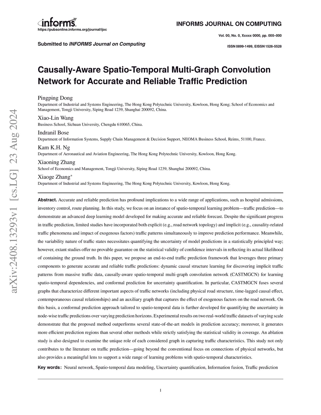 Accurate and reliable prediction has profound implications to a wide range of applications. In this study, we focus on an instance of spatio-temporal learning problem--traffic prediction--to demonstrate an advanced deep learning model developed for making accurate and reliable forecast. Despite the significant progress in traffic prediction, limited studies have incorporated both explicit and implicit traffic patterns simultaneously to improve prediction performance. Meanwhile, the variability nature of traffic states necessitates quantifying the uncertainty of model predictions in a statistically principled way; however, extant studies offer no provable guarantee on the statistical validity of confidence intervals in reflecting its actual likelihood of containing the ground truth. In this paper, we propose an end-to-end traffic prediction framework that leverages three primary components to generate accurate and reliable traffic predictions: dynamic causal structure learning for discovering implicit traffic patterns from massive traffic data, causally-aware spatio-temporal multi-graph convolution network (CASTMGCN) for learning spatio-temporal dependencies, and conformal prediction for uncertainty quantification. CASTMGCN fuses several graphs that characterize different important aspects of traffic networks and an auxiliary graph that captures the effect of exogenous factors on the road network. On this basis, a conformal prediction approach tailored to spatio-temporal data is further developed for quantifying the uncertainty in node-wise traffic predictions over varying prediction horizons. Experimental results on two real-world traffic datasets demonstrate that the proposed method outperforms several state-of-the-art models in prediction accuracy; moreover, it generates more efficient prediction regions than other methods while strictly satisfying the statistical validity in coverage.