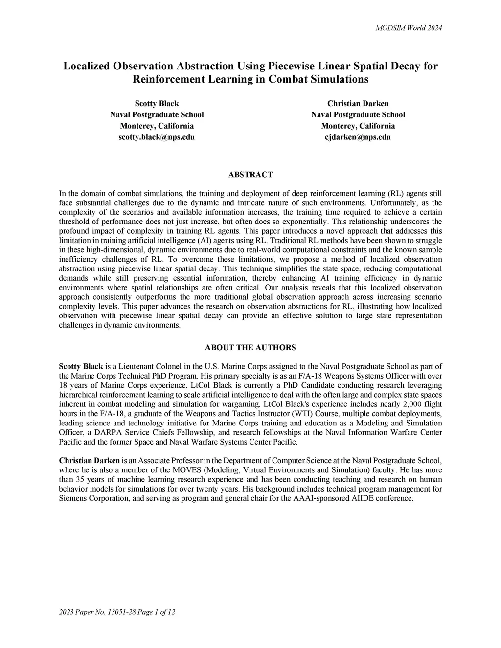 for Reinforcement Learning in Combat Simulations