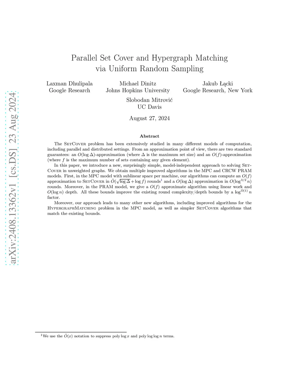 Parallel Set Cover and Hypergraph Matching via Uniform Random Sampling