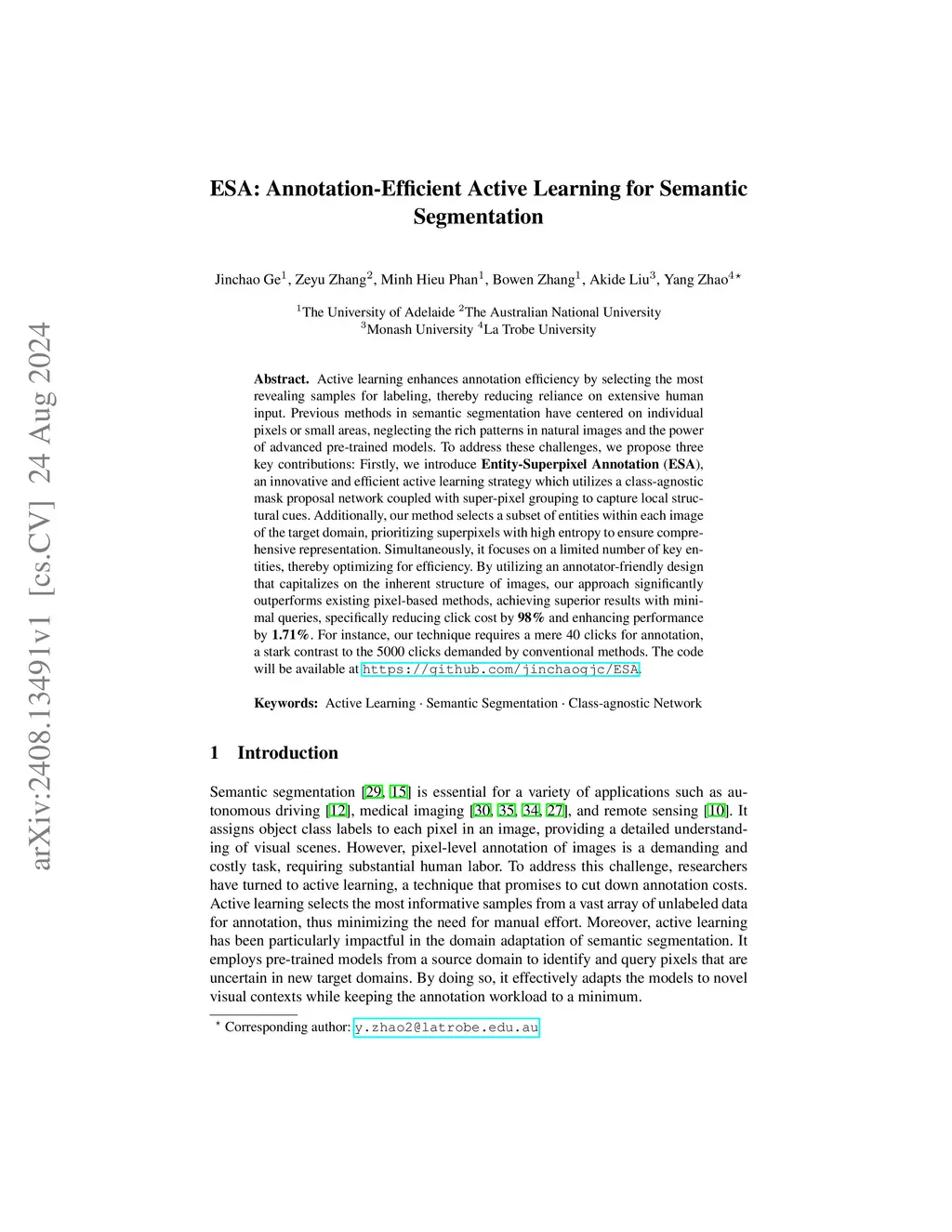 ESA: Annotation-Efficient Active Learning for Semantic Segmentation