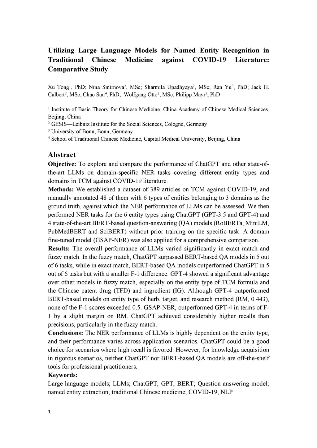 Objective: To explore and compare the performance of ChatGPT and other state-of-the-art LLMs on domain-specific NER tasks covering different entity types and domains in TCM against COVID-19 literature. Methods: We established a dataset of 389 articles on TCM against COVID-19, and manually annotated 48 of them with 6 types of entities belonging to 3 domains as the ground truth, against which the NER performance of LLMs can be assessed. We then performed NER tasks for the 6 entity types using ChatGPT (GPT-3.5 and GPT-4) and 4 state-of-the-art BERT-based question-answering (QA) models (RoBERTa, MiniLM, PubMedBERT and SciBERT) without prior training on the specific task. A domain fine-tuned model (GSAP-NER) was also applied for a comprehensive comparison. Results: The overall performance of LLMs varied significantly in exact match and fuzzy match. In the fuzzy match, ChatGPT surpassed BERT-based QA models in 5 out of 6 tasks, while in exact match, BERT-based QA models outperformed ChatGPT in 5 out of 6 tasks but with a smaller F-1 difference. GPT-4 showed a significant advantage over other models in fuzzy match, especially on the entity type of TCM formula and the Chinese patent drug (TFD) and ingredient (IG). Although GPT-4 outperformed BERT-based models on entity type of herb, target, and research method, none of the F-1 scores exceeded 0.5. GSAP-NER, outperformed GPT-4 in terms of F-1 by a slight margin on RM. ChatGPT achieved considerably higher recalls than precisions, particularly in the fuzzy match. Conclusions: The NER performance of LLMs is highly dependent on the entity type, and their performance varies across application scenarios. ChatGPT could be a good choice for scenarios where high recall is favored. However, for knowledge acquisition in rigorous scenarios, neither ChatGPT nor BERT-based QA models are off-the-shelf tools for professional practitioners.