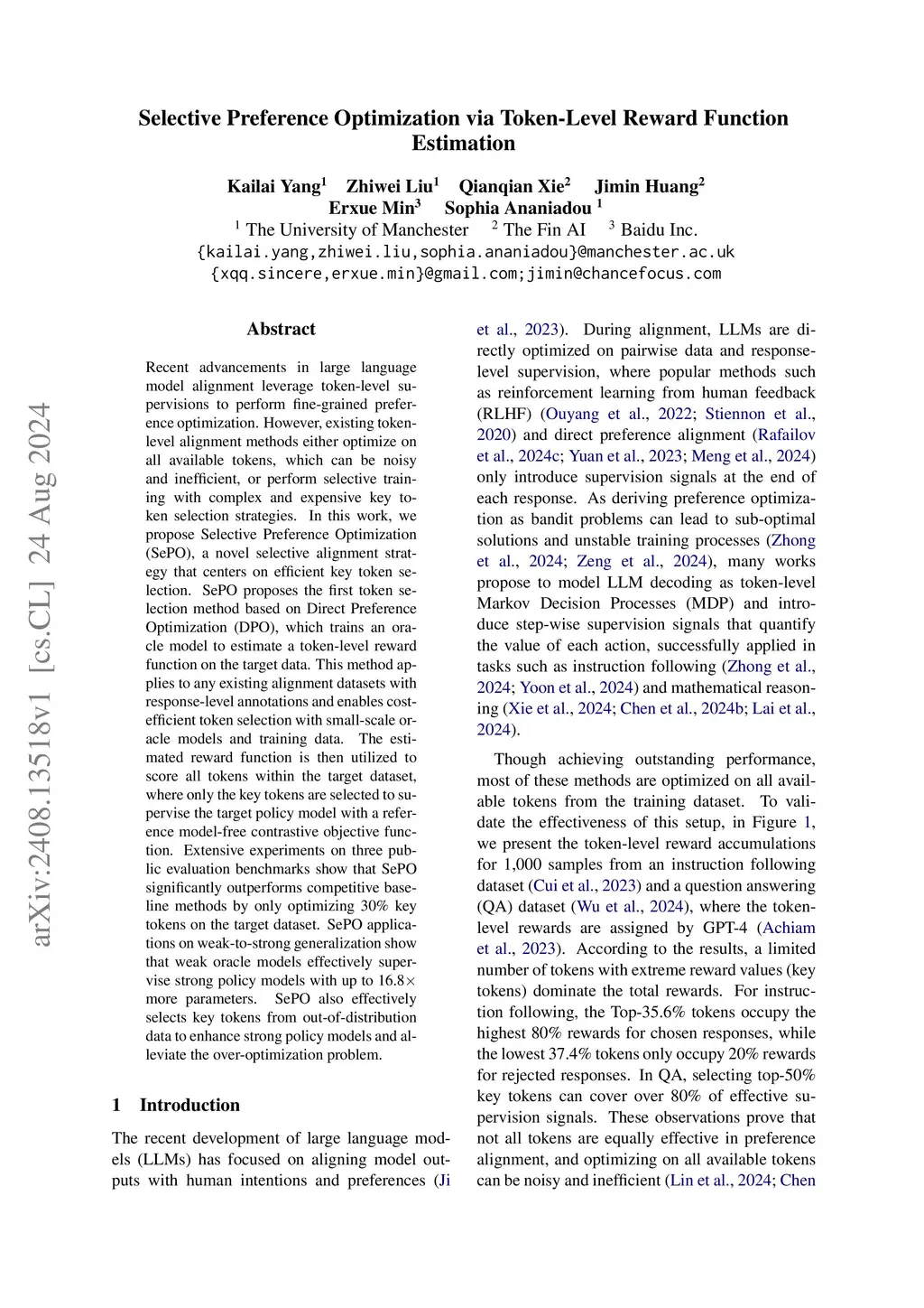 Selective Preference Optimization via Token-Level Reward Function Estimation