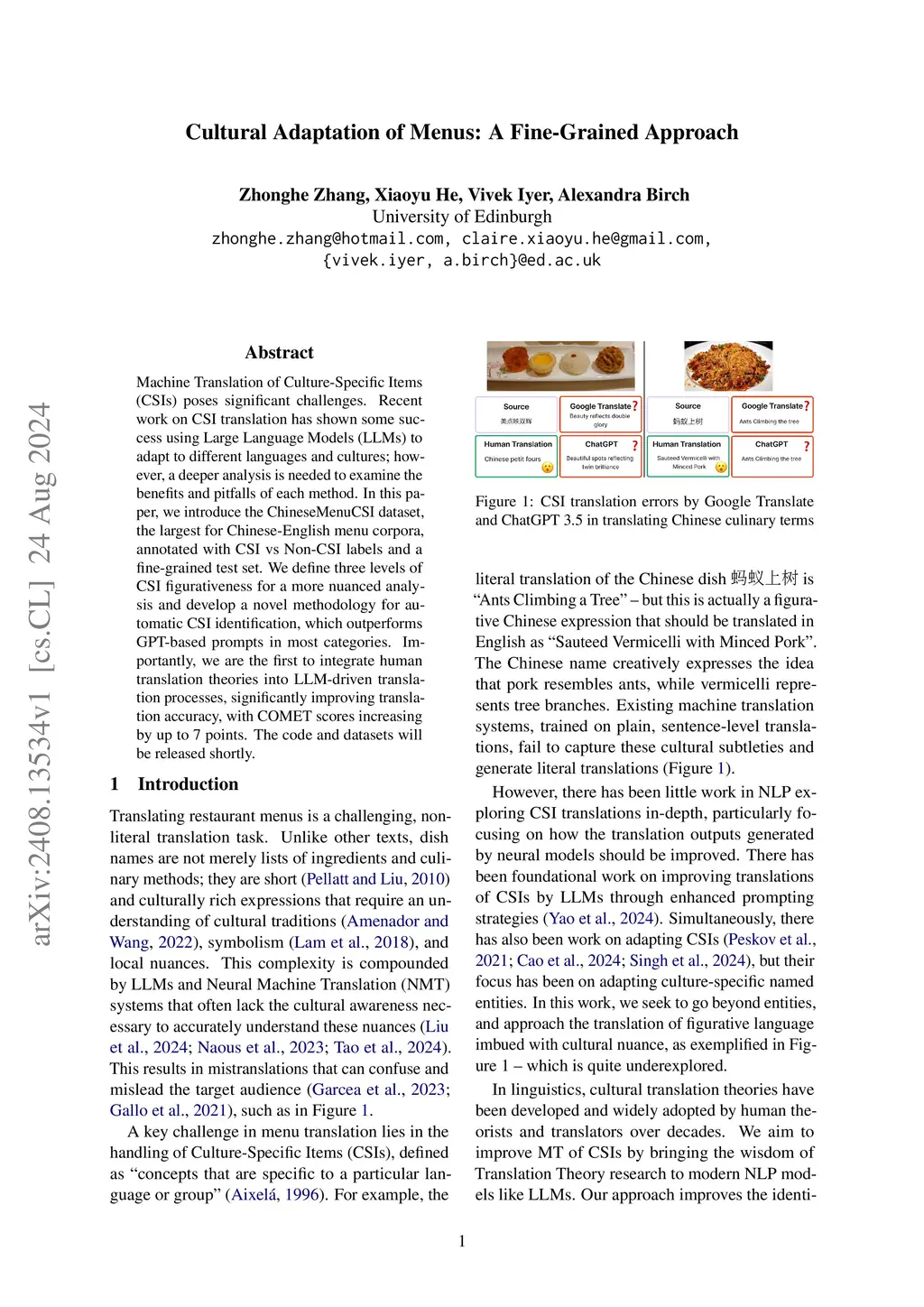 Cultural Adaptation of Menus: A Fine-Grained Approach