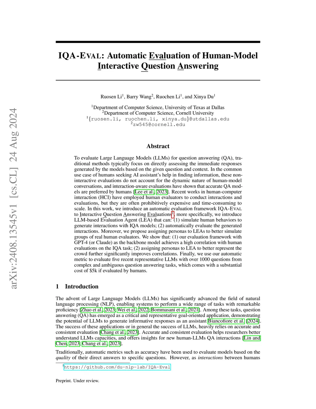 IQA-EVAL: Automatic Evaluation of Human-Model Interactive Question