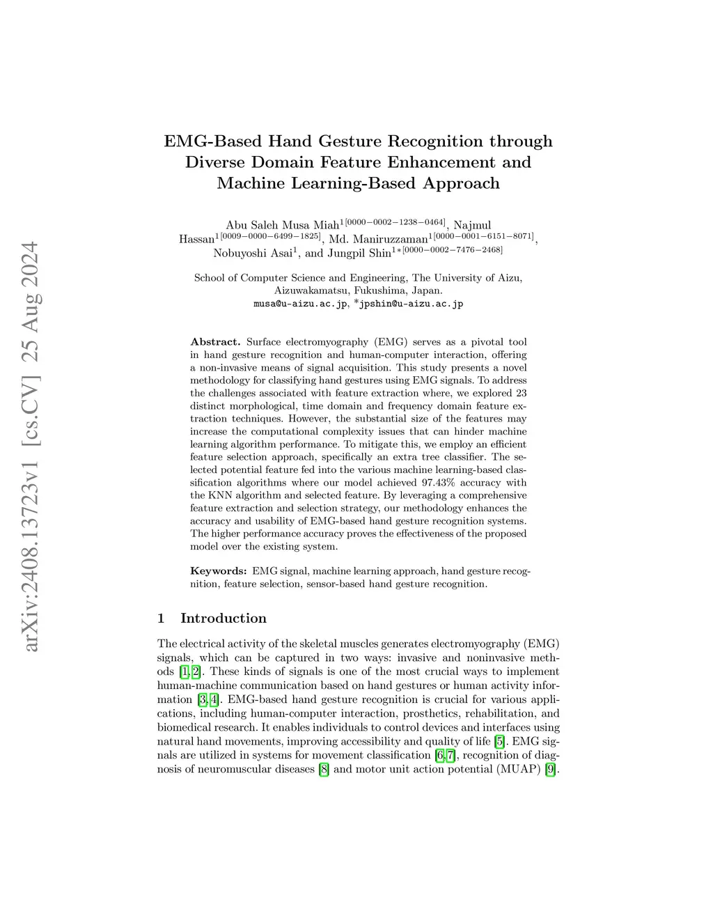 EMG-Based Hand Gesture Recognition through Diverse Domain Feature