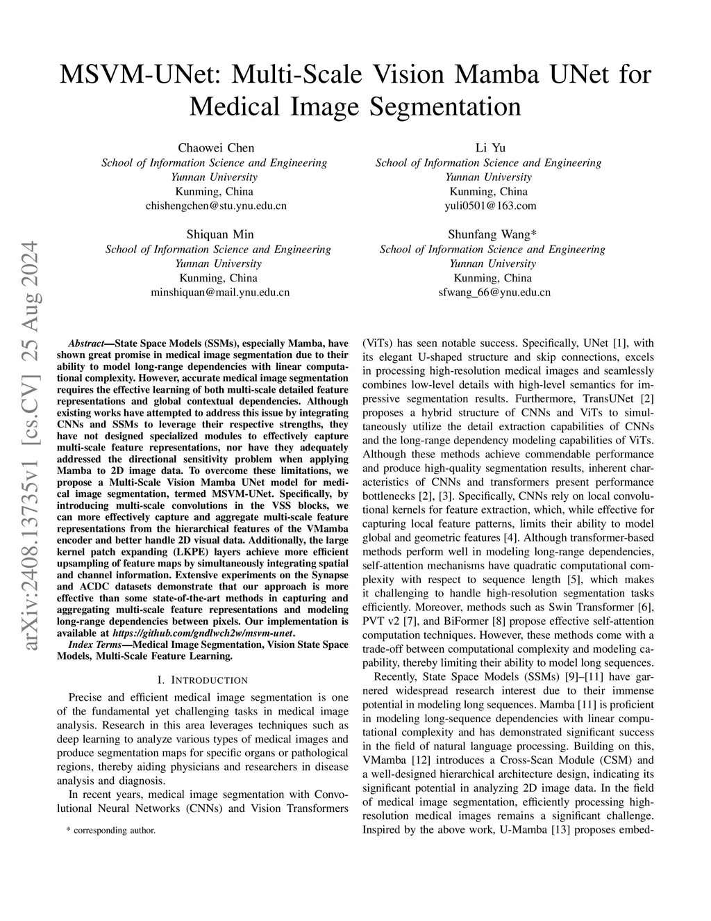 MSVM-UNet: Multi-Scale Vision Mamba UNet for Medical Image Segmentation