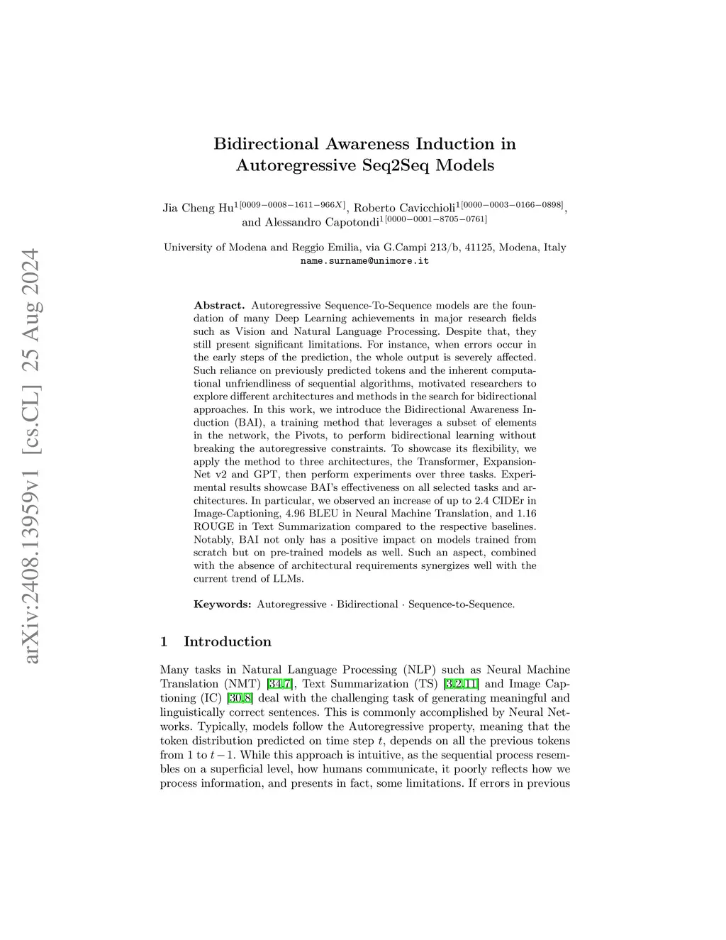 Bidirectional Awareness Induction in Autoregressive Seq2Seq Models