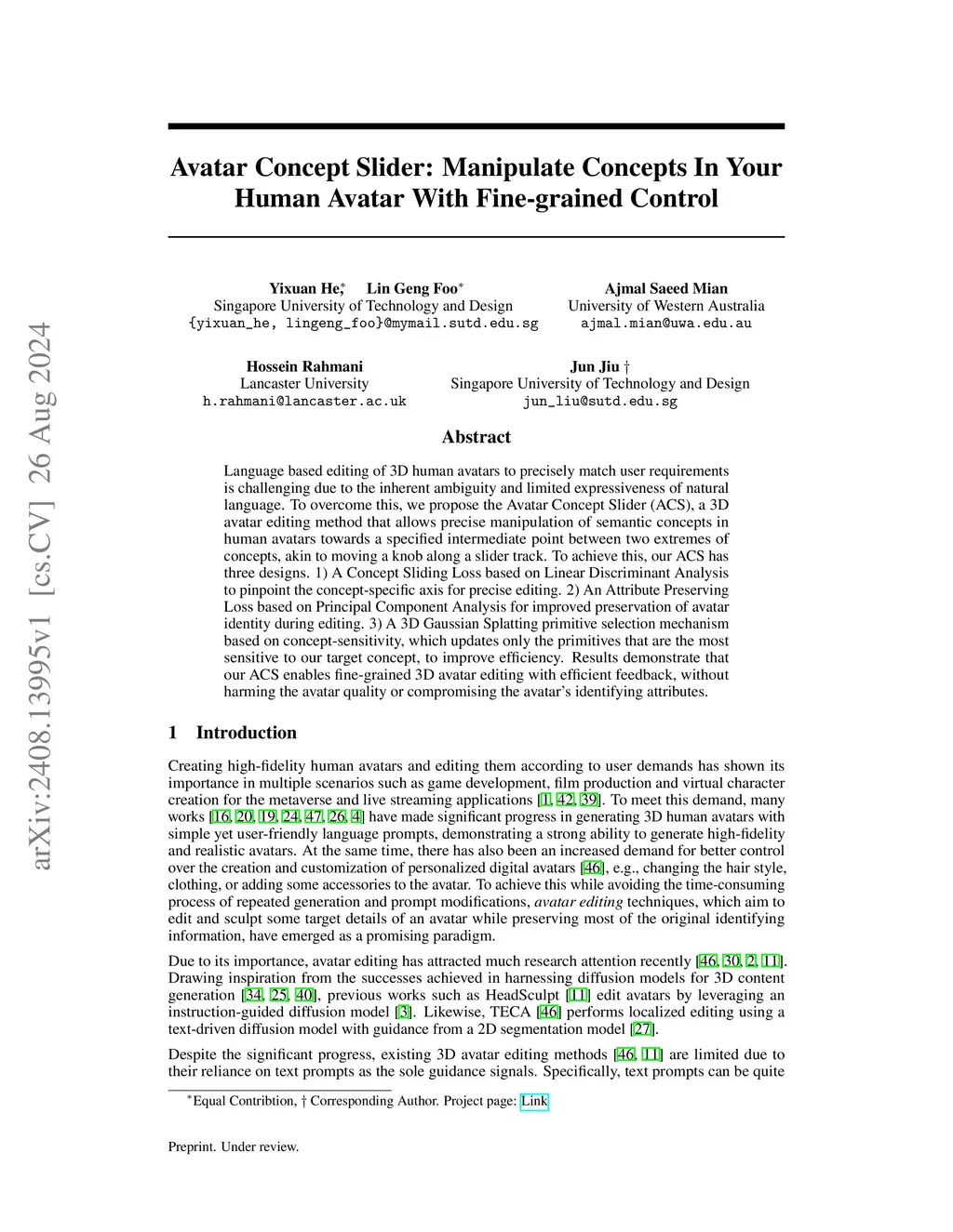 Text-based editing of 3D human avatars to precisely match user requirements is challenging due to the inherent ambiguity and limited expressiveness of natural language. To overcome this, we propose the Avatar Concept Slider (ACS), a 3D avatar editing method that allows precise editing of semantic concepts in human avatars towards a specified intermediate point between two extremes of concepts, akin to moving a knob along a slider track. To achieve this, our ACS has three designs: Firstly, a Concept Sliding Loss based on linear discriminant analysis to pinpoint the concept-specific axes for precise editing. Secondly, an Attribute Preserving Loss based on principal component analysis for improved preservation of avatar identity during editing. We further propose a 3D Gaussian Splatting primitive selection mechanism based on concept-sensitivity, which updates only the primitives that are the most sensitive to our target concept, to improve efficiency. Results demonstrate that our ACS enables controllable 3D avatar editing, without compromising the avatar quality or its identifying attributes.