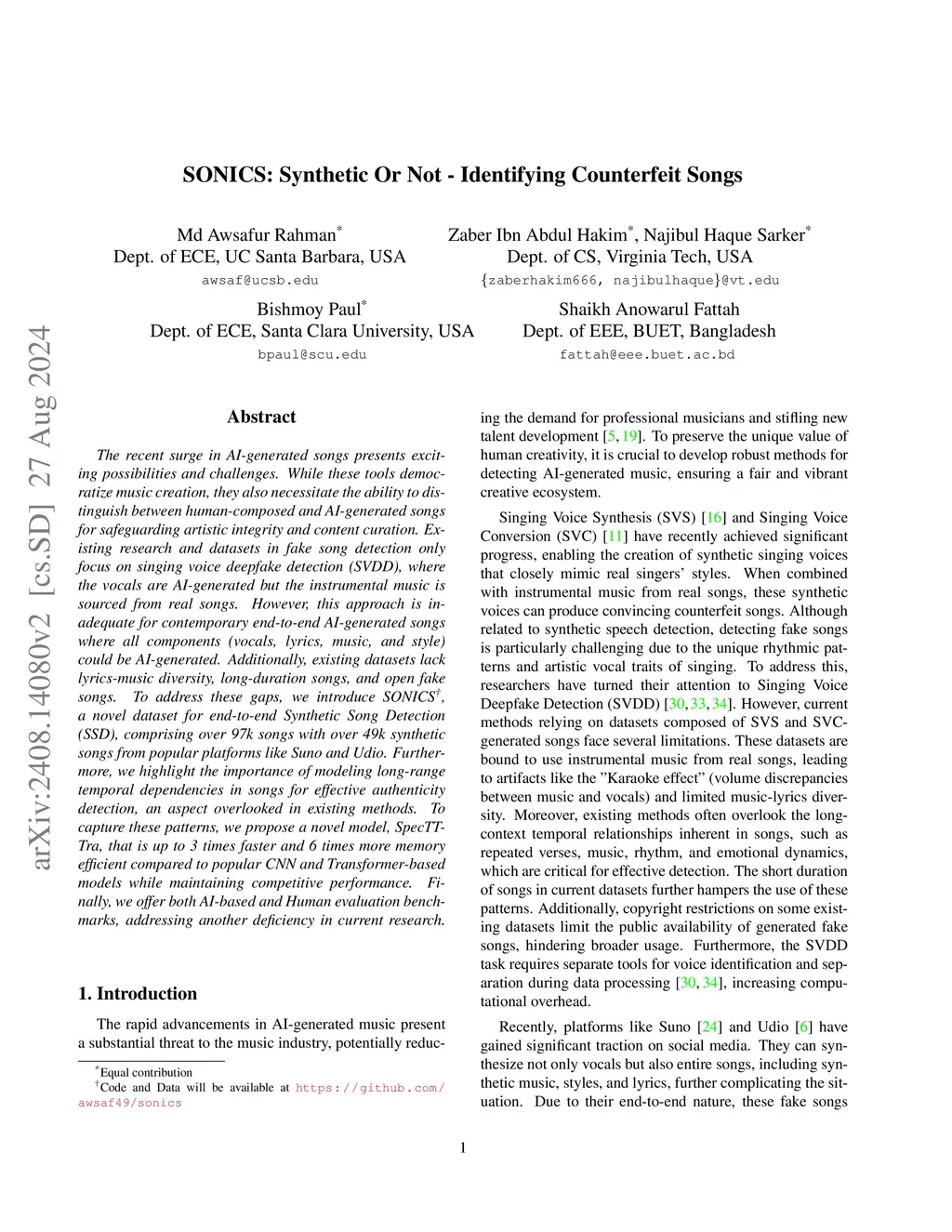 SONICS: Synthetic Or Not -- Identifying Counterfeit Songs