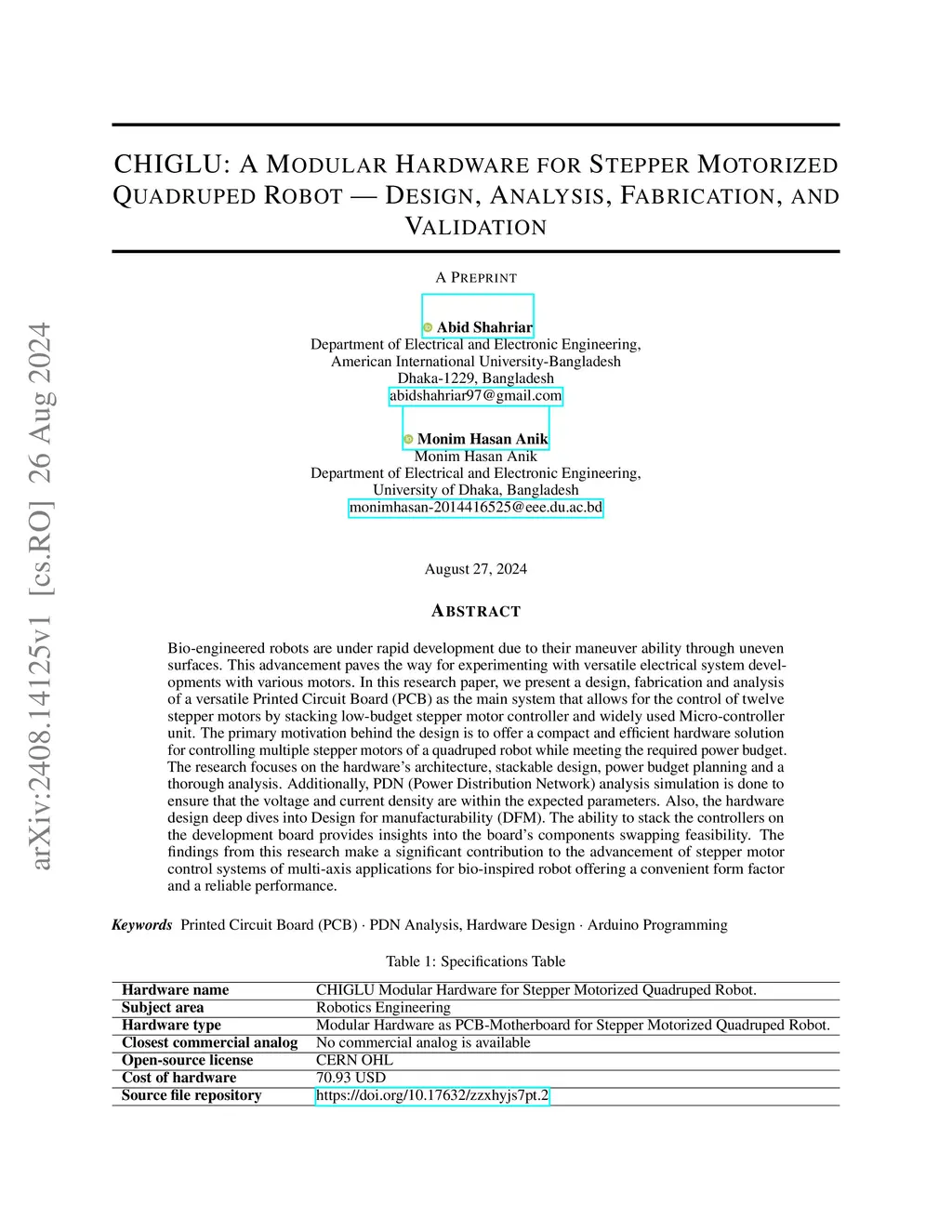 CHIGLU: A Modular Hardware for Stepper Motorized Quadruped Robot
