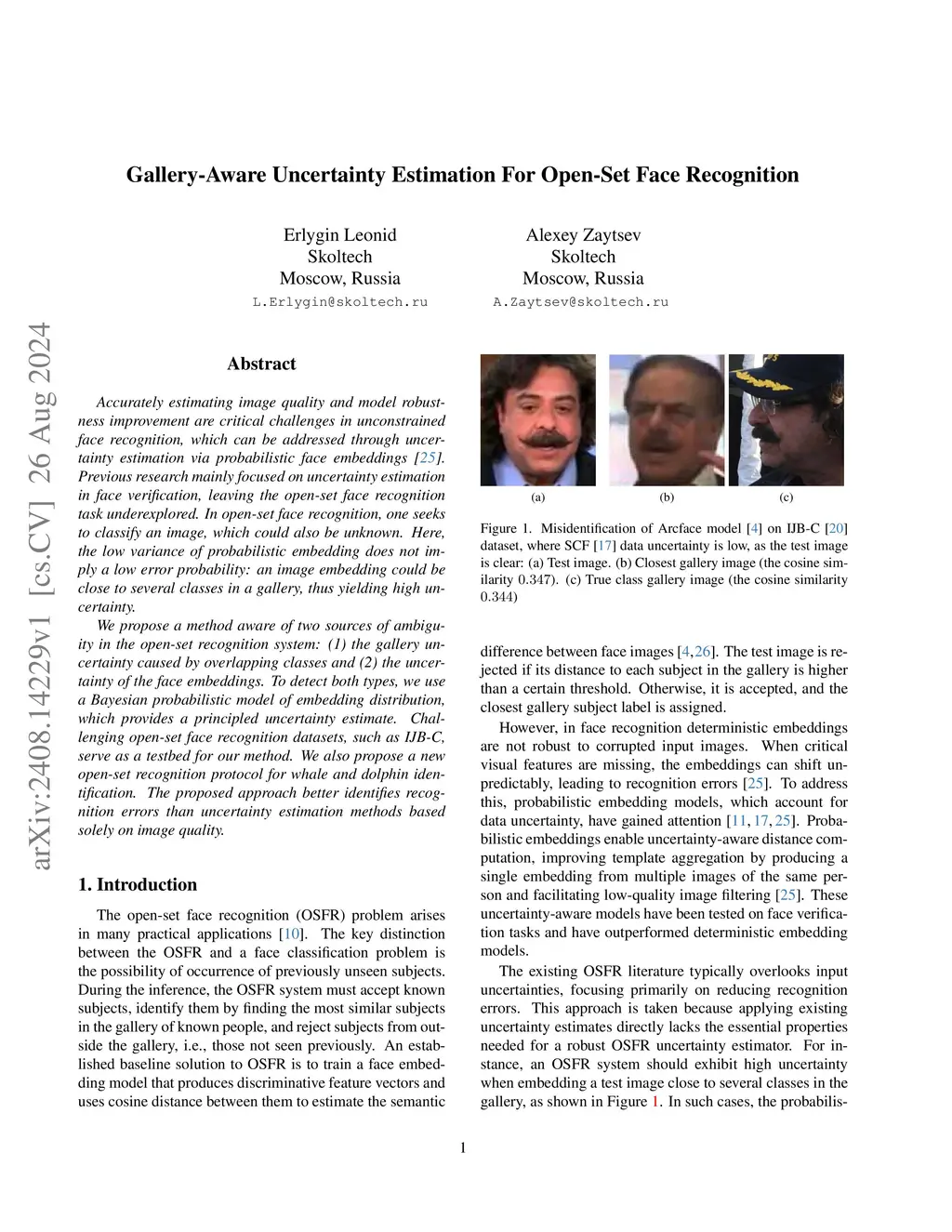 Accurate uncertainty estimation is a critical challenge in open-set recognition, where a probe biometric sample may belong to an unknown identity. It can be addressed through sample quality estimation via probabilistic embeddings. However, the low variance of probabilistic embedding only partly implies a low identification error probability: an embedding of a sample could be close to several classes in a gallery, thus yielding high uncertainty despite high sample quality. We propose HolUE - a holistic uncertainty estimation method based on a Bayesian probabilistic model; it is aware of two sources of ambiguity in the open-set recognition system: (1) the gallery uncertainty caused by overlapping classes and (2) the uncertainty of embeddings. Challenging open-set recognition datasets, such as IJB-C for the image domain and VoxBlink for the audio domain, serve as a testbed for our method. We also provide a new open-set recognition protocol for the identification of whales and dolphins. In all cases, HolUE better identifies recognition errors than alternative uncertainty estimation methods, including those based solely on sample quality.
