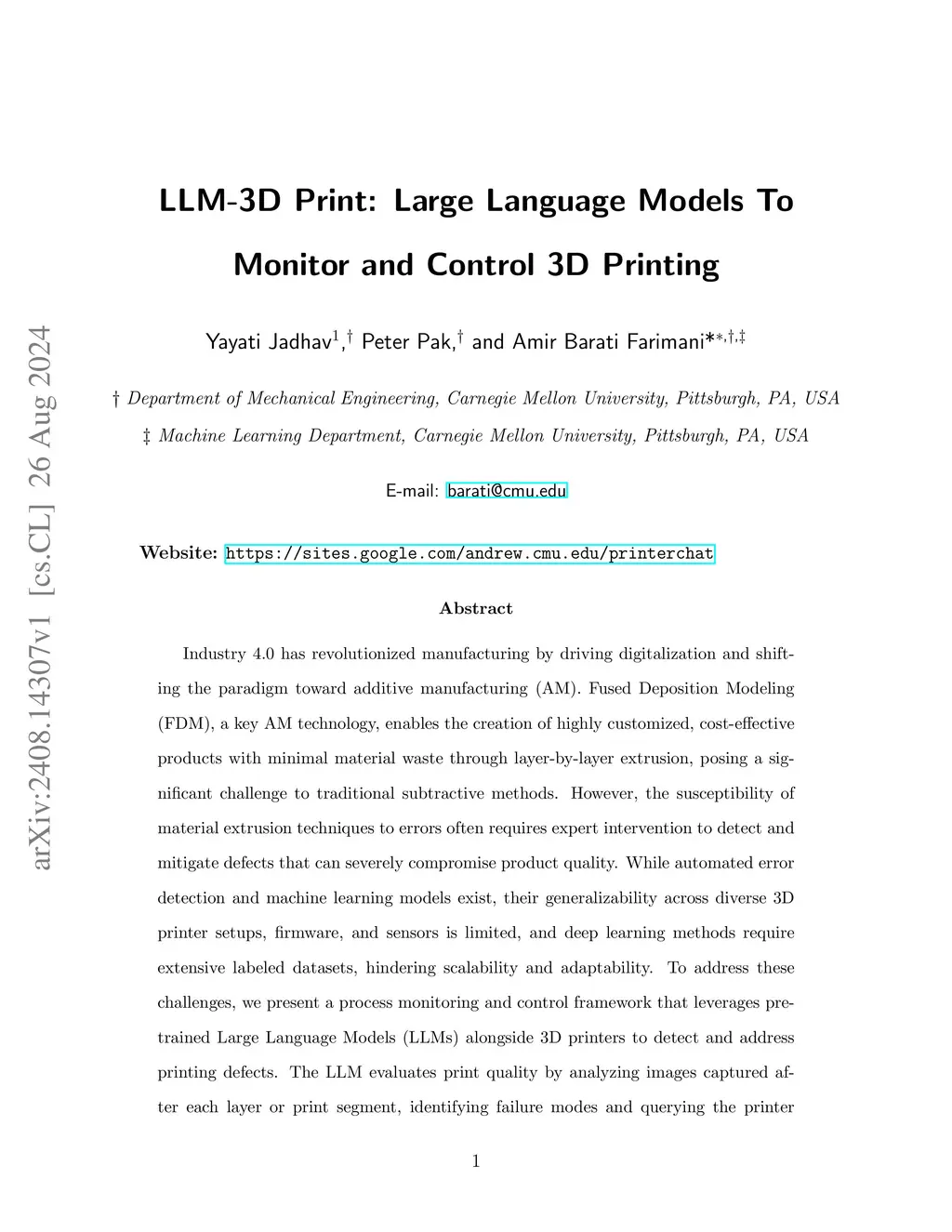 LLM-3D Print: Large Language Models To Monitor and Control 3D Printing