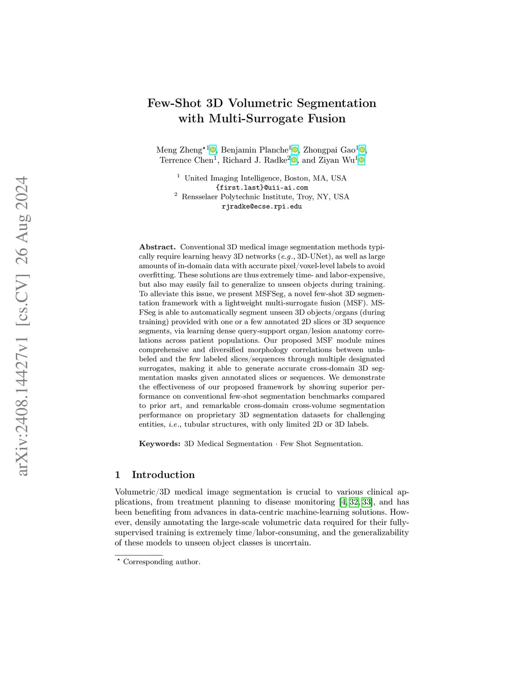 Few-Shot 3D Volumetric Segmentation with Multi-Surrogate Fusion
