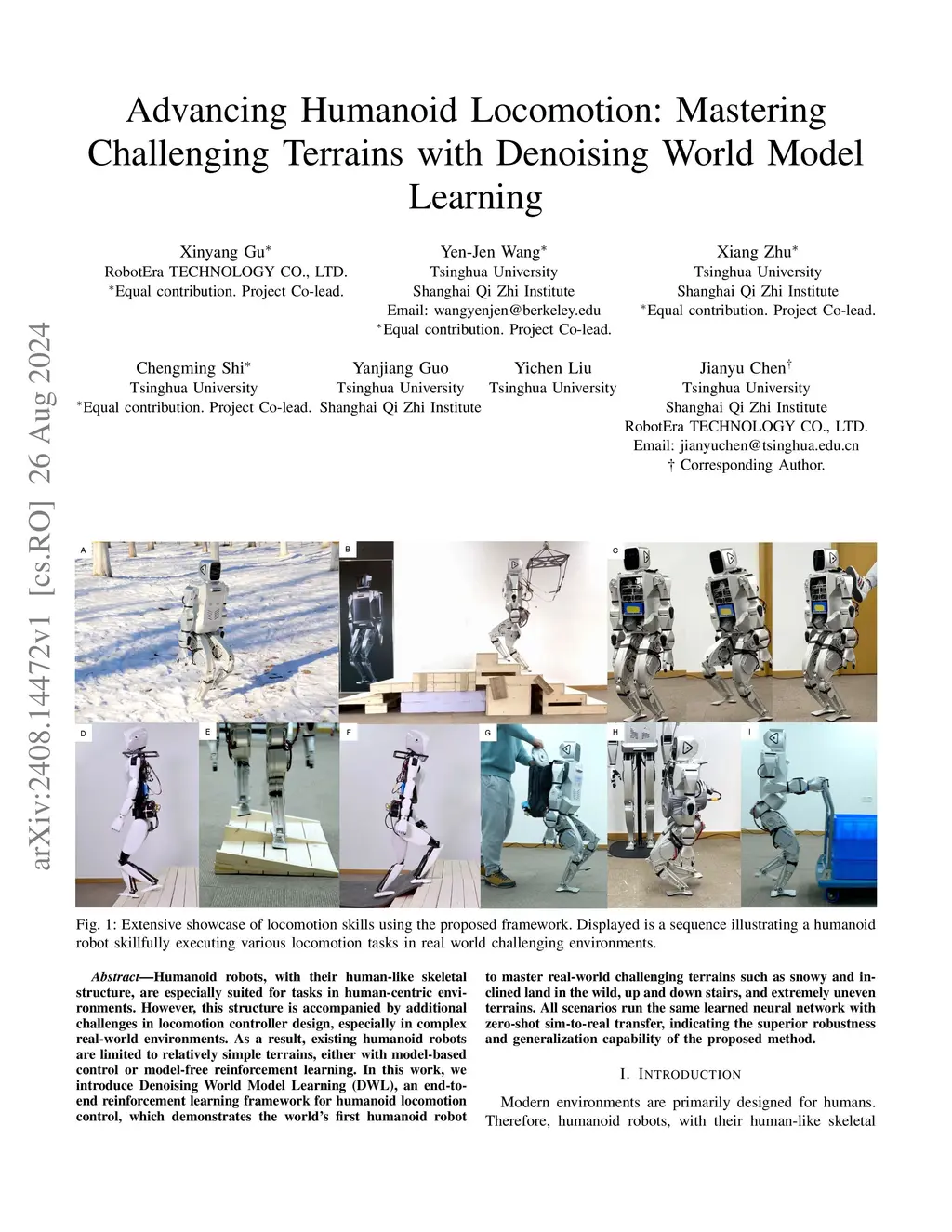 Humanoid robots, with their human-like skeletal structure, are especially suited for tasks in human-centric environments. However, this structure is accompanied by additional challenges in locomotion controller design, especially in complex real-world environments. As a result, existing humanoid robots are limited to relatively simple terrains, either with model-based control or model-free reinforcement learning. In this work, we introduce Denoising World Model Learning (DWL), an end-to-end reinforcement learning framework for humanoid locomotion control, which demonstrates the world's first humanoid robot to master real-world challenging terrains such as snowy and inclined land in the wild, up and down stairs, and extremely uneven terrains. All scenarios run the same learned neural network with zero-shot sim-to-real transfer, indicating the superior robustness and generalization capability of the proposed method.