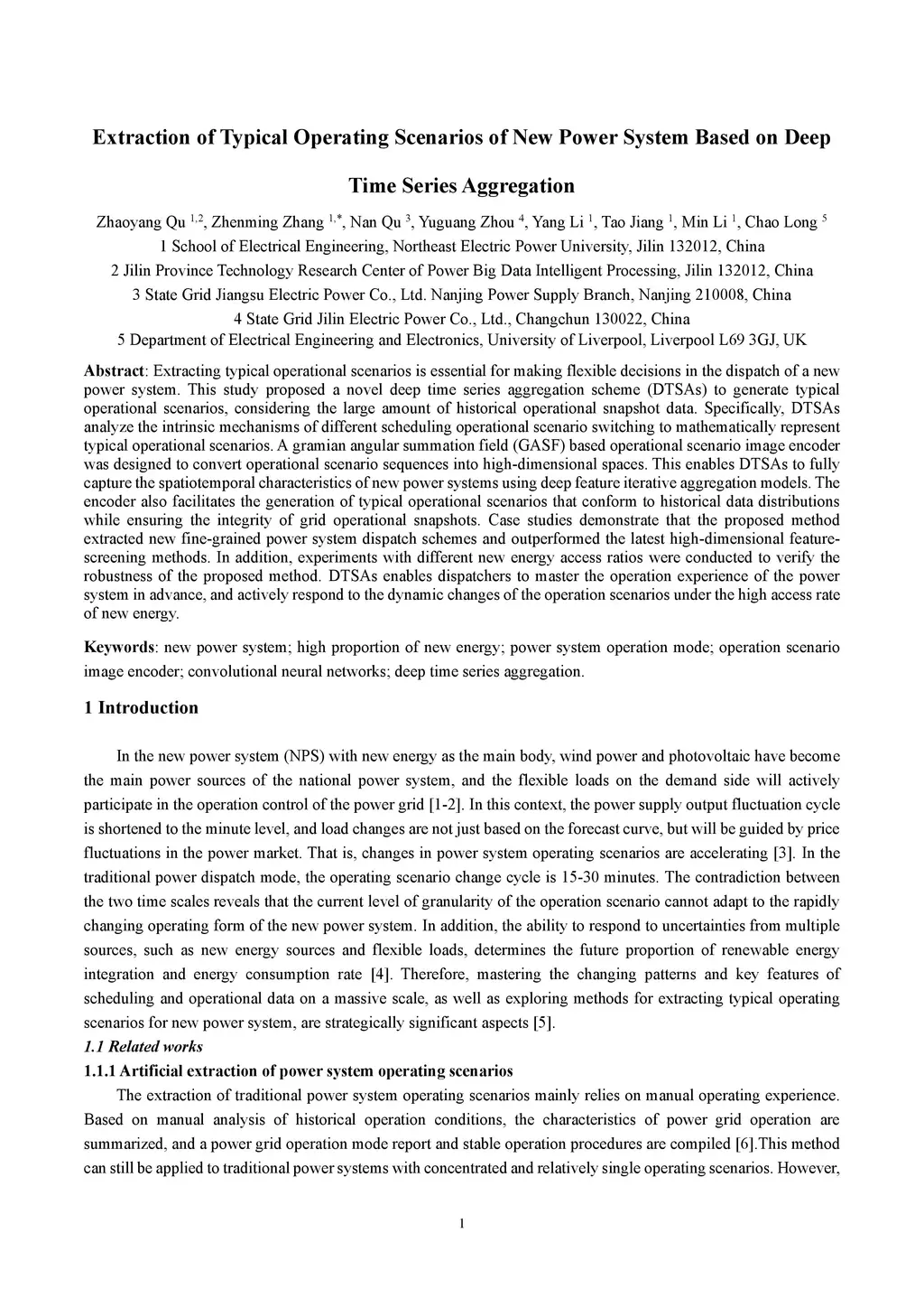 Extracting typical operational scenarios is essential for making flexible decisions in the dispatch of a new power system. This study proposed a novel deep time series aggregation scheme (DTSAs) to generate typical operational scenarios, considering the large amount of historical operational snapshot data. Specifically, DTSAs analyze the intrinsic mechanisms of different scheduling operational scenario switching to mathematically represent typical operational scenarios. A gramian angular summation field (GASF) based operational scenario image encoder was designed to convert operational scenario sequences into high-dimensional spaces. This enables DTSAs to fully capture the spatiotemporal characteristics of new power systems using deep feature iterative aggregation models. The encoder also facilitates the generation of typical operational scenarios that conform to historical data distributions while ensuring the integrity of grid operational snapshots. Case studies demonstrate that the proposed method extracted new fine-grained power system dispatch schemes and outperformed the latest high-dimensional featurescreening methods. In addition, experiments with different new energy access ratios were conducted to verify the robustness of the proposed method. DTSAs enables dispatchers to master the operation experience of the power system in advance, and actively respond to the dynamic changes of the operation scenarios under the high access rate of new energy.
