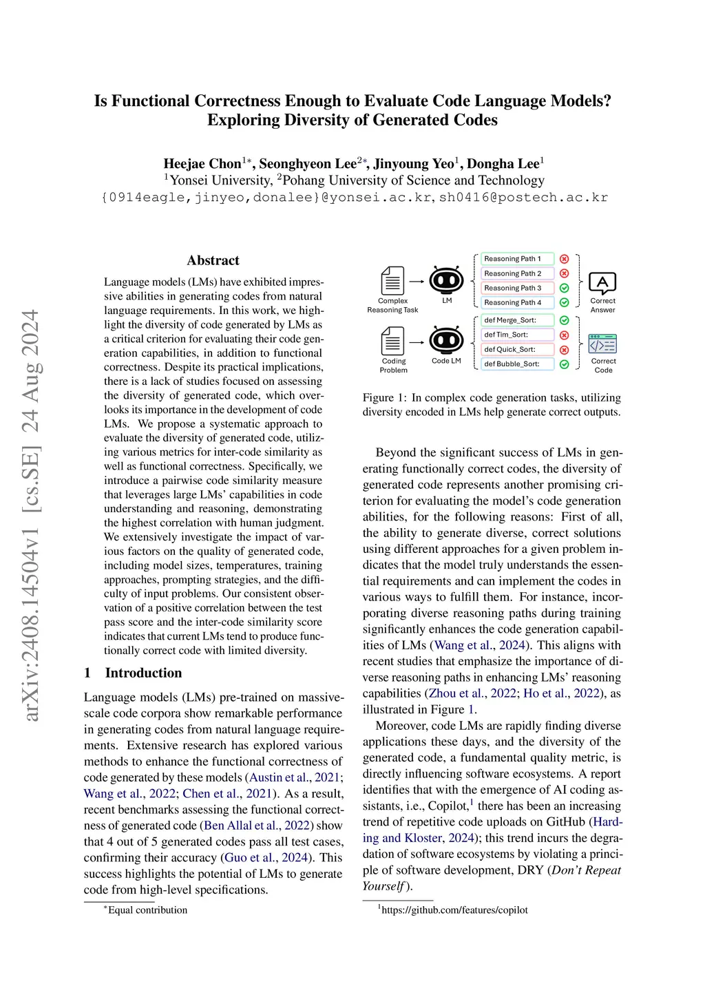 Language models (LMs) have exhibited impressive abilities in generating codes from natural language requirements. In this work, we highlight the diversity of code generated by LMs as a critical criterion for evaluating their code generation capabilities, in addition to functional correctness. Despite its practical implications, there is a lack of studies focused on assessing the diversity of generated code, which overlooks its importance in the development of code LMs. We propose a systematic approach to evaluate the diversity of generated code, utilizing various metrics for inter-code similarity as well as functional correctness. Specifically, we introduce a pairwise code similarity measure that leverages large LMs' capabilities in code understanding and reasoning, demonstrating the highest correlation with human judgment. We extensively investigate the impact of various factors on the quality of generated code, including model sizes, temperatures, training approaches, prompting strategies, and the difficulty of input problems. Our consistent observation of a positive correlation between the test pass score and the inter-code similarity score indicates that current LMs tend to produce functionally correct code with limited diversity.