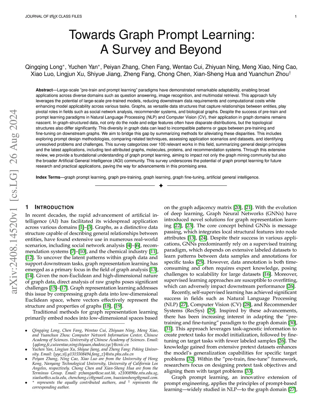 Large-scale "pre-train and prompt learning" paradigms have demonstrated remarkable adaptability, enabling broad applications across diverse domains such as question answering, image recognition, and multimodal retrieval. This approach fully leverages the potential of large-scale pre-trained models, reducing downstream data requirements and computational costs while enhancing model applicability across various tasks. Graphs, as versatile data structures that capture relationships between entities, play pivotal roles in fields such as social network analysis, recommender systems, and biological graphs. Despite the success of pre-train and prompt learning paradigms in Natural Language Processing (NLP) and Computer Vision (CV), their application in graph domains remains nascent. In graph-structured data, not only do the node and edge features often have disparate distributions, but the topological structures also differ significantly. This diversity in graph data can lead to incompatible patterns or gaps between pre-training and fine-tuning on downstream graphs. We aim to bridge this gap by summarizing methods for alleviating these disparities. This includes exploring prompt design methodologies, comparing related techniques, assessing application scenarios and datasets, and identifying unresolved problems and challenges. This survey categorizes over 100 relevant works in this field, summarizing general design principles and the latest applications, including text-attributed graphs, molecules, proteins, and recommendation systems. Through this extensive review, we provide a foundational understanding of graph prompt learning, aiming to impact not only the graph mining community but also the broader Artificial General Intelligence (AGI) community.