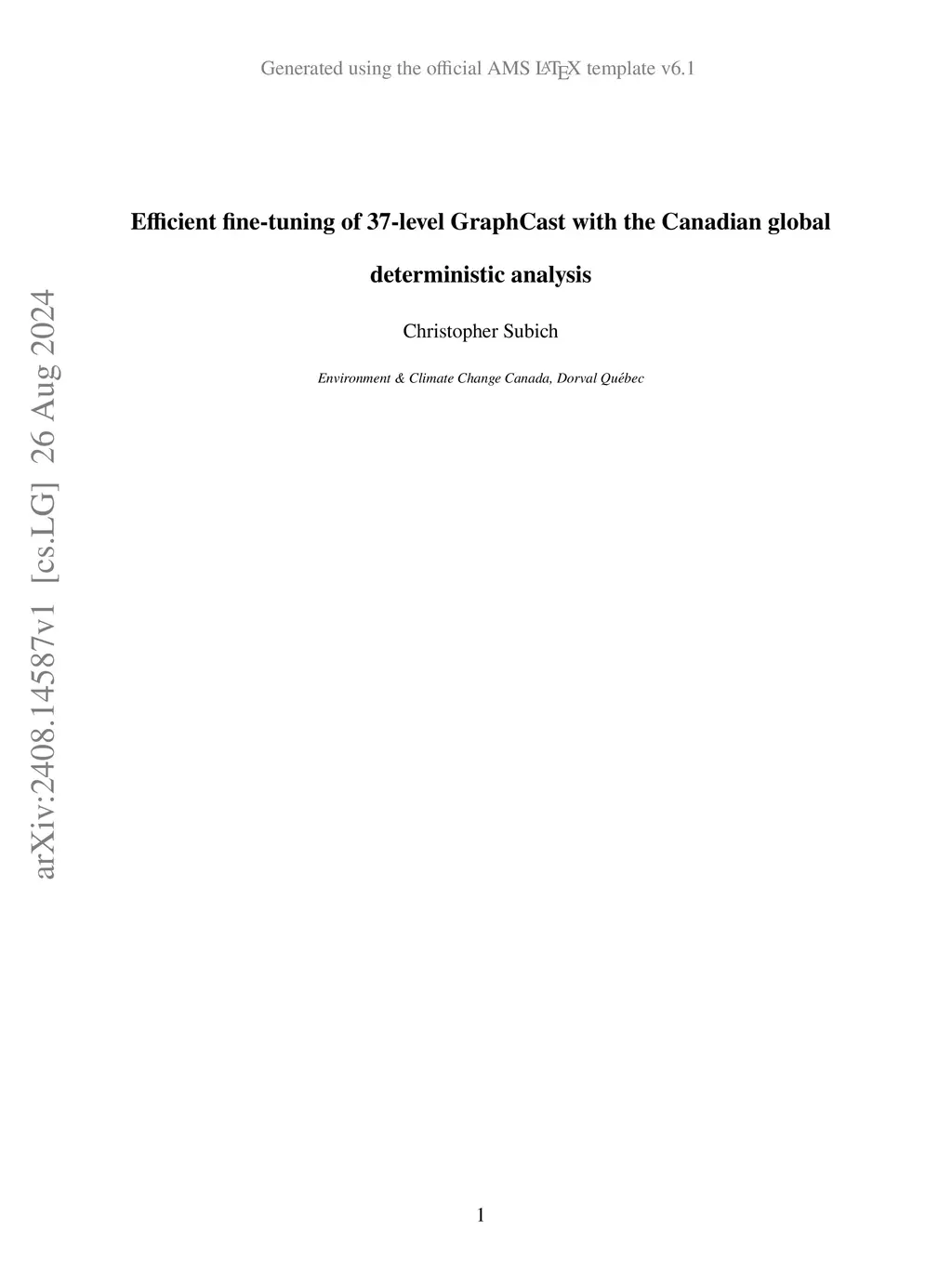 Efficient fine-tuning of 37-level GraphCast with the Canadian global deterministic analysis