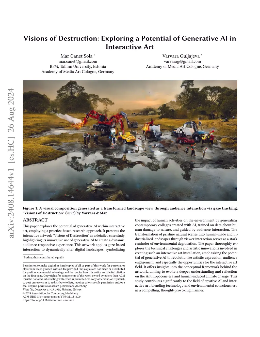This paper explores the potential of generative AI within interactive art, employing a practice-based research approach. It presents the interactive artwork "Visions of Destruction" as a detailed case study, highlighting its innovative use of generative AI to create a dynamic, audience-responsive experience. This artwork applies gaze-based interaction to dynamically alter digital landscapes, symbolizing the impact of human activities on the environment by generating contemporary collages created with AI, trained on data about human damage to nature, and guided by audience interaction. The transformation of pristine natural scenes into human-made and industrialized landscapes through viewer interaction serves as a stark reminder of environmental degradation. The paper thoroughly explores the technical challenges and artistic innovations involved in creating such an interactive art installation, emphasizing the potential of generative AI to revolutionize artistic expression, audience engagement, and especially the opportunities for the interactive art field. It offers insights into the conceptual framework behind the artwork, aiming to evoke a deeper understanding and reflection on the Anthropocene era and human-induced climate change. This study contributes significantly to the field of creative AI and interactive art, blending technology and environmental consciousness in a compelling, thought-provoking manner.