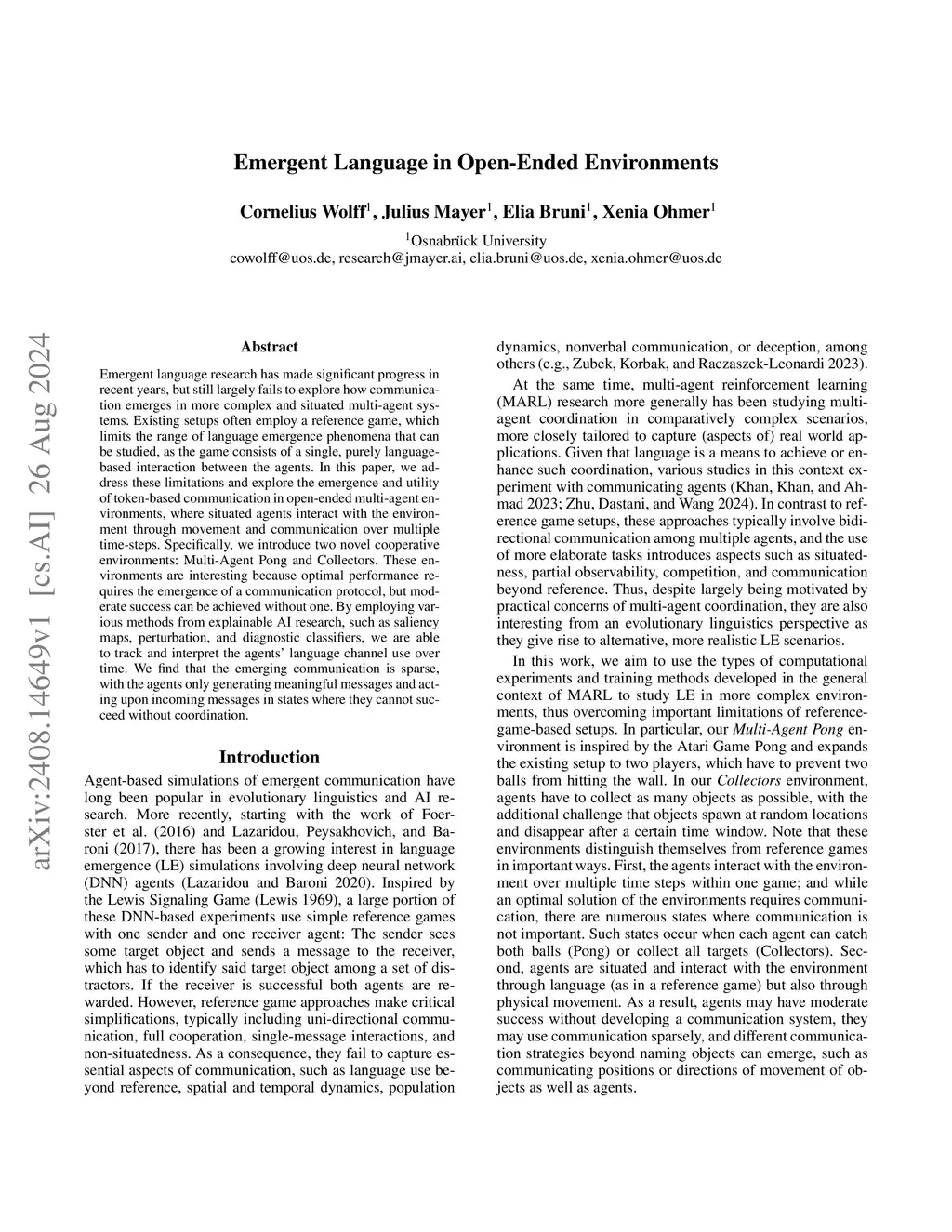 Emergent language research has made significant progress in recent years, but still largely fails to explore how communication emerges in more complex and situated multi-agent systems. Existing setups often employ a reference game, which limits the range of language emergence phenomena that can be studied, as the game consists of a single, purely language-based interaction between the agents. In this paper, we address these limitations and explore the emergence and utility of token-based communication in open-ended multi-agent environments, where situated agents interact with the environment through movement and communication over multiple time-steps. Specifically, we introduce two novel cooperative environments: Multi-Agent Pong and Collectors. These environments are interesting because optimal performance requires the emergence of a communication protocol, but moderate success can be achieved without one. By employing various methods from explainable AI research, such as saliency maps, perturbation, and diagnostic classifiers, we are able to track and interpret the agents' language channel use over time. We find that the emerging communication is sparse, with the agents only generating meaningful messages and acting upon incoming messages in states where they cannot succeed without coordination.