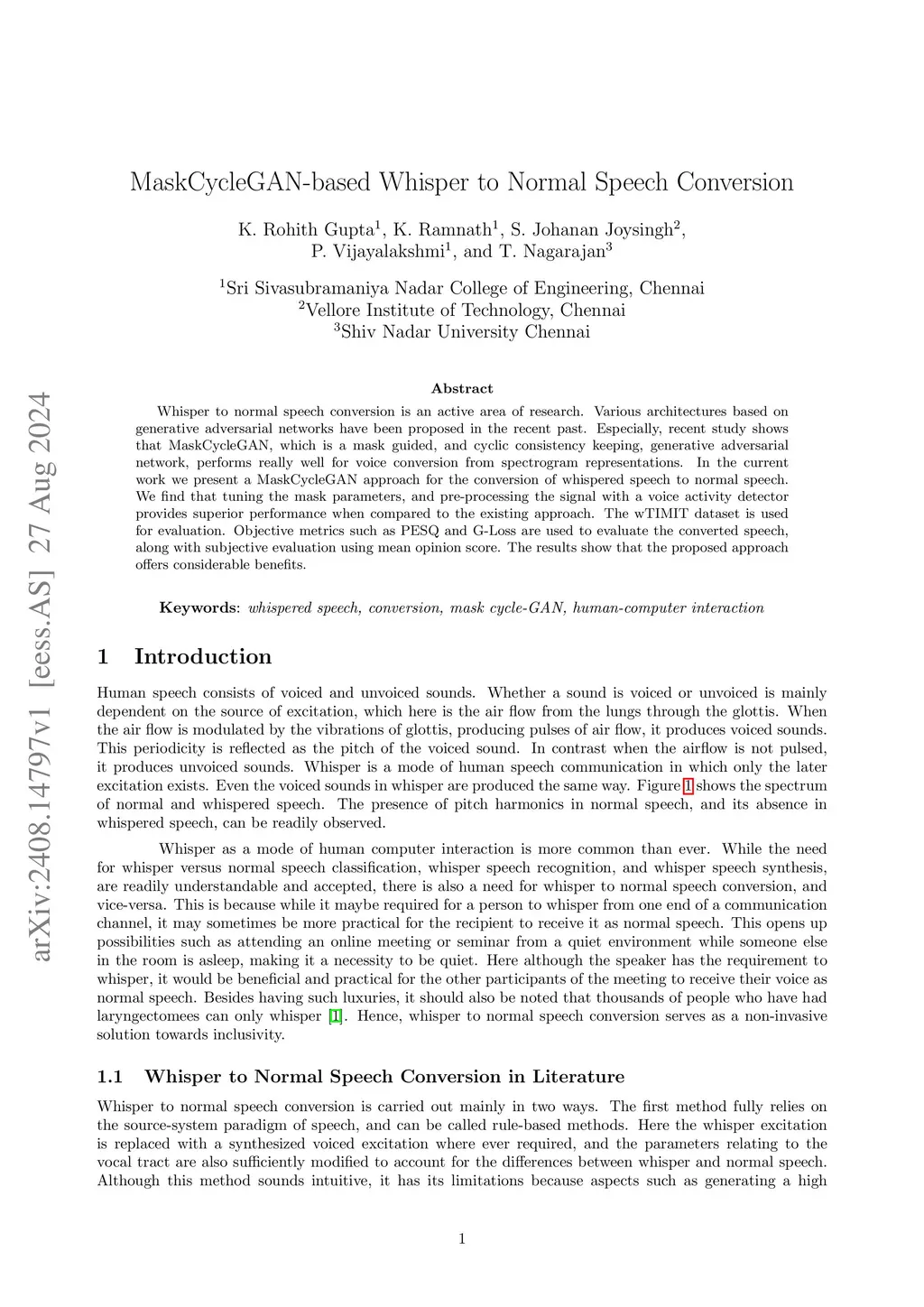 MaskCycleGAN-based Whisper to Normal Speech Conversion