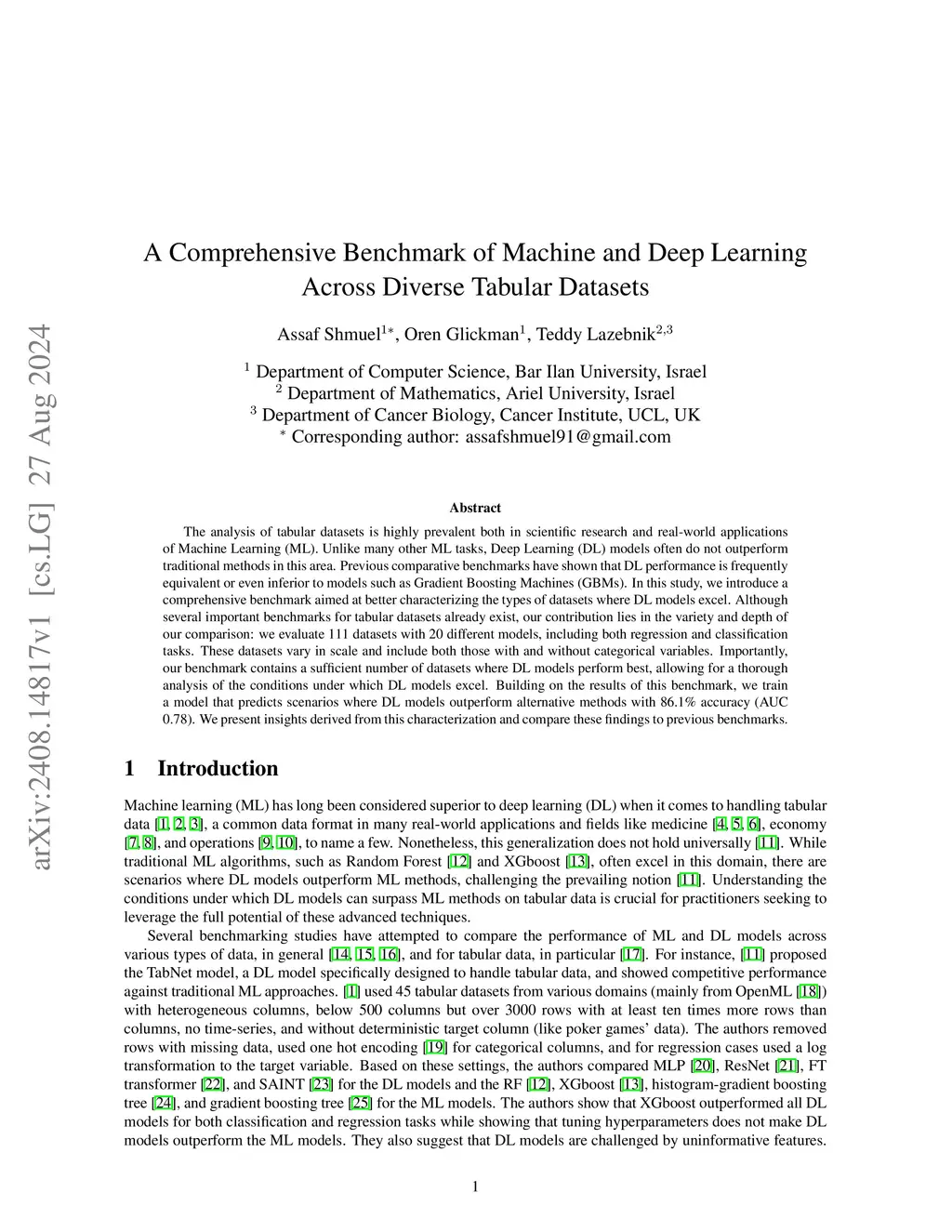 A Comprehensive Benchmark of Machine and Deep Learning Across Diverse