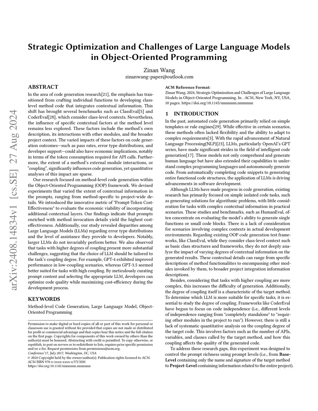 In the area of code generation research, the emphasis has transitioned from crafting individual functions to developing class-level method code that integrates contextual information. This shift has brought several benchmarks such as ClassEval and CoderEval, which consider class-level contexts. Nevertheless, the influence of specific contextual factors at the method level remains less explored. This research focused on method-level code generation within the Object-Oriented Programming (OOP) framework. Based on CoderEval, we devised experiments that varied the extent of contextual information in the prompts, ranging from method-specific to project-wide details. We introduced the innovative metric of "Prompt-Token Cost-Effectiveness" to evaluate the economic viability of incorporating additional contextual layers. Our findings indicate that prompts enriched with method invocation details yield the highest cost-effectiveness. Additionally, our study revealed disparities among Large Language Models (LLMs) regarding error type distributions and the level of assistance they provide to developers. Notably, larger LLMs do not invariably perform better. We also observed that tasks with higher degrees of coupling present more substantial challenges, suggesting that the choice of LLM should be tailored to the task's coupling degree. For example, GPT-4 exhibited improved performance in low-coupling scenarios, whereas GPT-3.5 seemed better suited for tasks with high coupling. By meticulously curating prompt content and selecting the appropriate LLM, developers can optimize code quality while maximizing cost-efficiency during the development process.