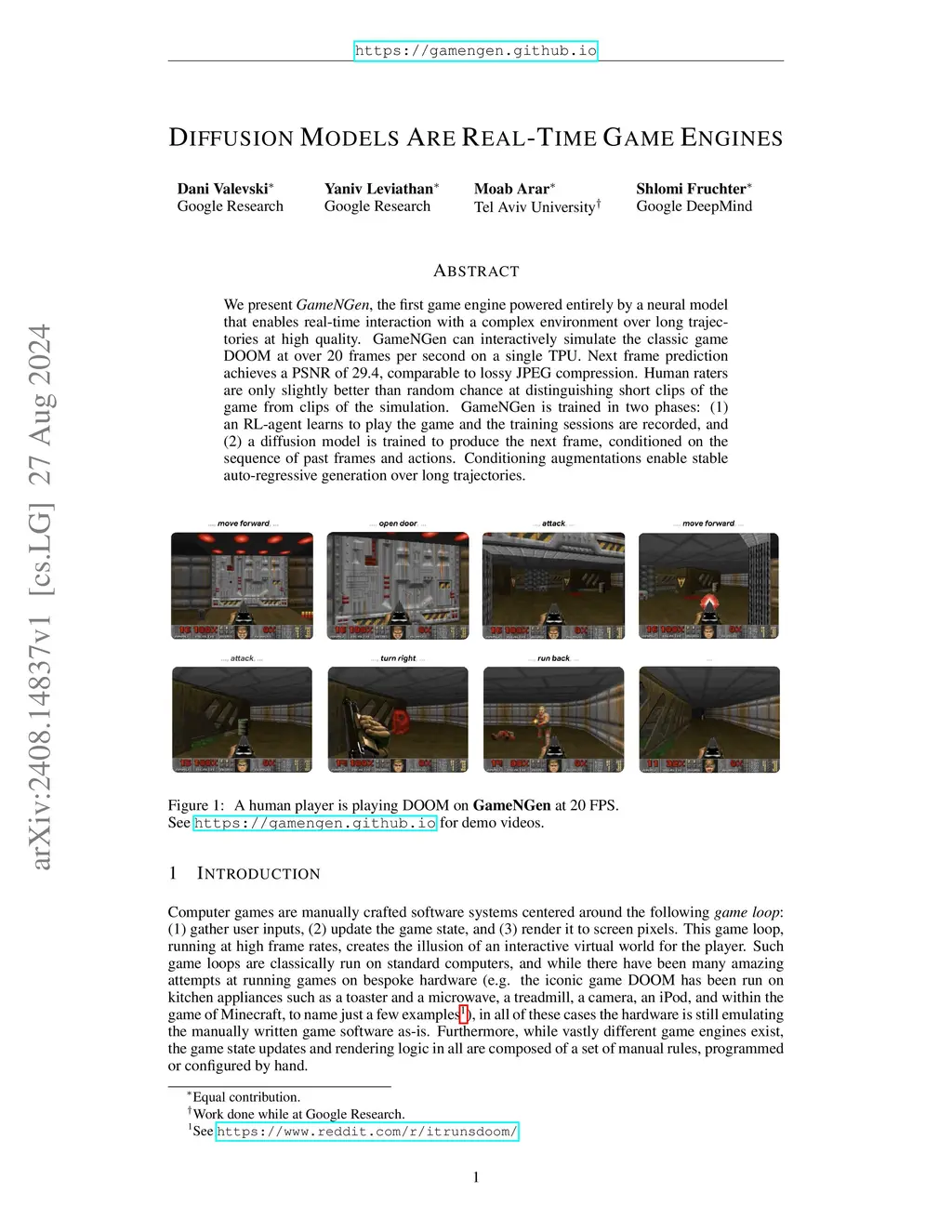 Diffusion Models Are Real-Time Game Engines