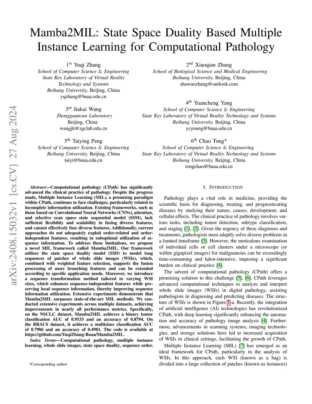 Computational pathology (CPath) has significantly advanced the clinical practice of pathology. Despite the progress made, Multiple Instance Learning (MIL), a promising paradigm within CPath, continues to face challenges, particularly related to incomplete information utilization. Existing frameworks, such as those based on Convolutional Neural Networks (CNNs), attention, and selective scan space state sequential model (SSM), lack sufficient flexibility and scalability in fusing diverse features, and cannot effectively fuse diverse features. Additionally, current approaches do not adequately exploit order-related and order-independent features, resulting in suboptimal utilization of sequence information. To address these limitations, we propose a novel MIL framework called Mamba2MIL. Our framework utilizes the state space duality model (SSD) to model long sequences of patches of whole slide images (WSIs), which, combined with weighted feature selection, supports the fusion processing of more branching features and can be extended according to specific application needs. Moreover, we introduce a sequence transformation method tailored to varying WSI sizes, which enhances sequence-independent features while preserving local sequence information, thereby improving sequence information utilization. Extensive experiments demonstrate that Mamba2MIL surpasses state-of-the-art MIL methods. We conducted extensive experiments across multiple datasets, achieving improvements in nearly all performance metrics. Specifically, on the NSCLC dataset, Mamba2MIL achieves a binary tumor classification AUC of 0.9533 and an accuracy of 0.8794. On the BRACS dataset, it achieves a multiclass classification AUC of 0.7986 and an accuracy of 0.4981. The code is available at https://github.com/YuqiZhang-Buaa/Mamba2MIL.